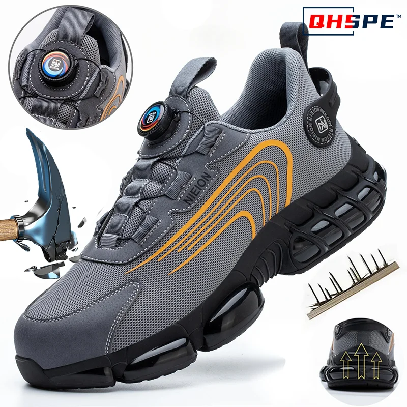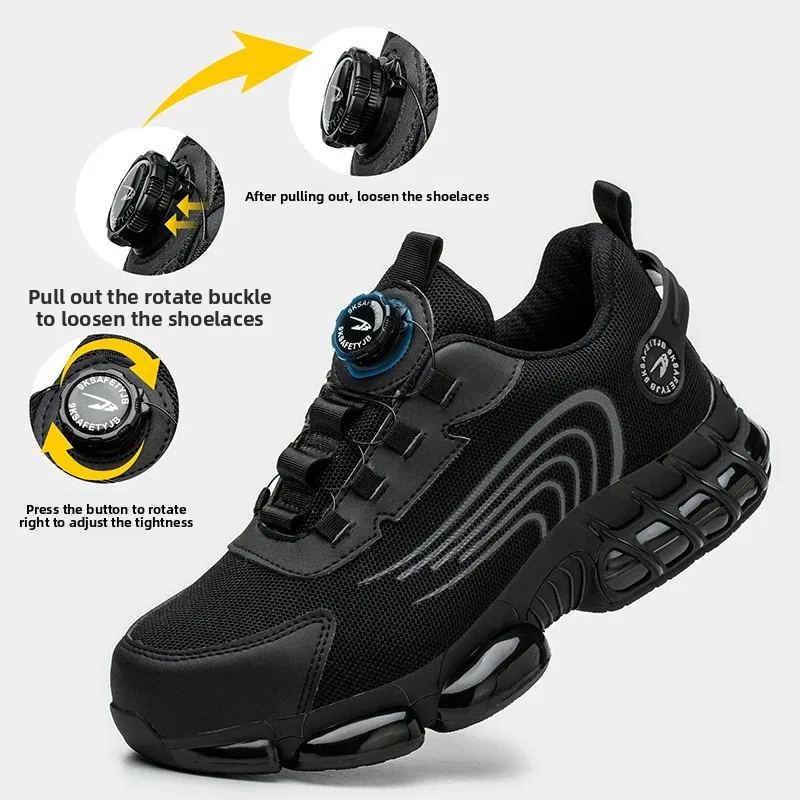 Men’s Safety Shoes Rotating Button Men Sneakers Puncture-Proof Anti-smash Work Shoes Men Protective Working Shoes Steel Toe