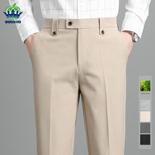 OUSSYU Brand High Quality Business Suit Ankle Length Pants Men Grey Khaki Waist Design Work Office Formal Long Trousers Male