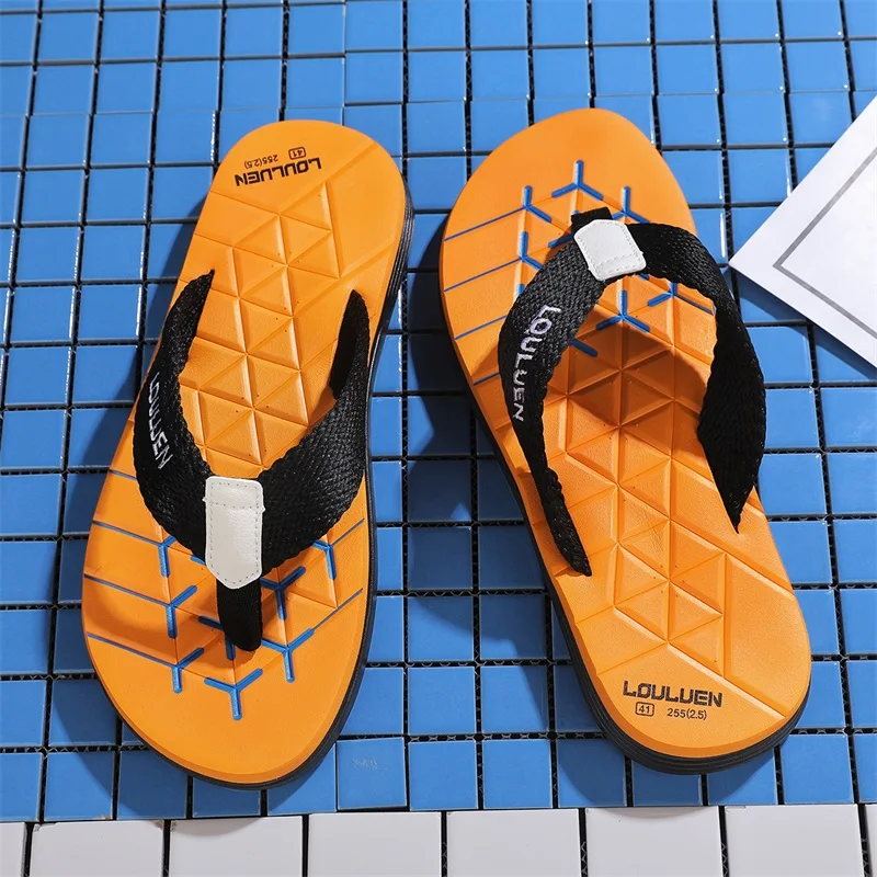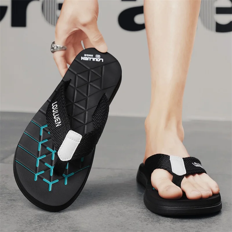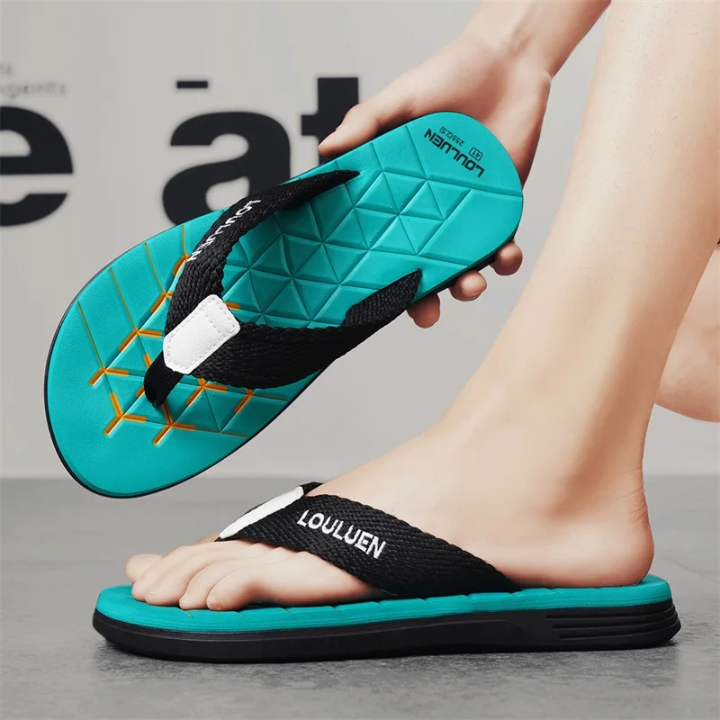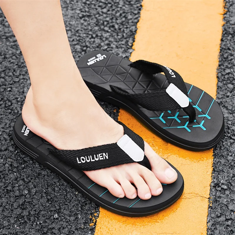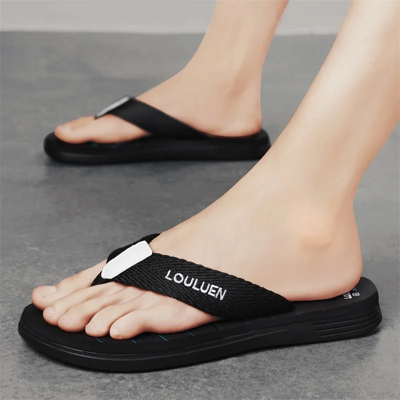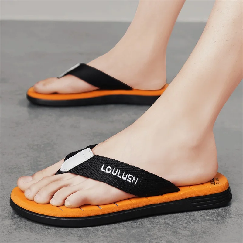 Men’s shoes, flip flops, flip flops, men’s summer casual outdoor wear, one foot on men’s shoes, men’s flip flops, summer beach f
