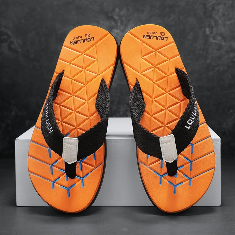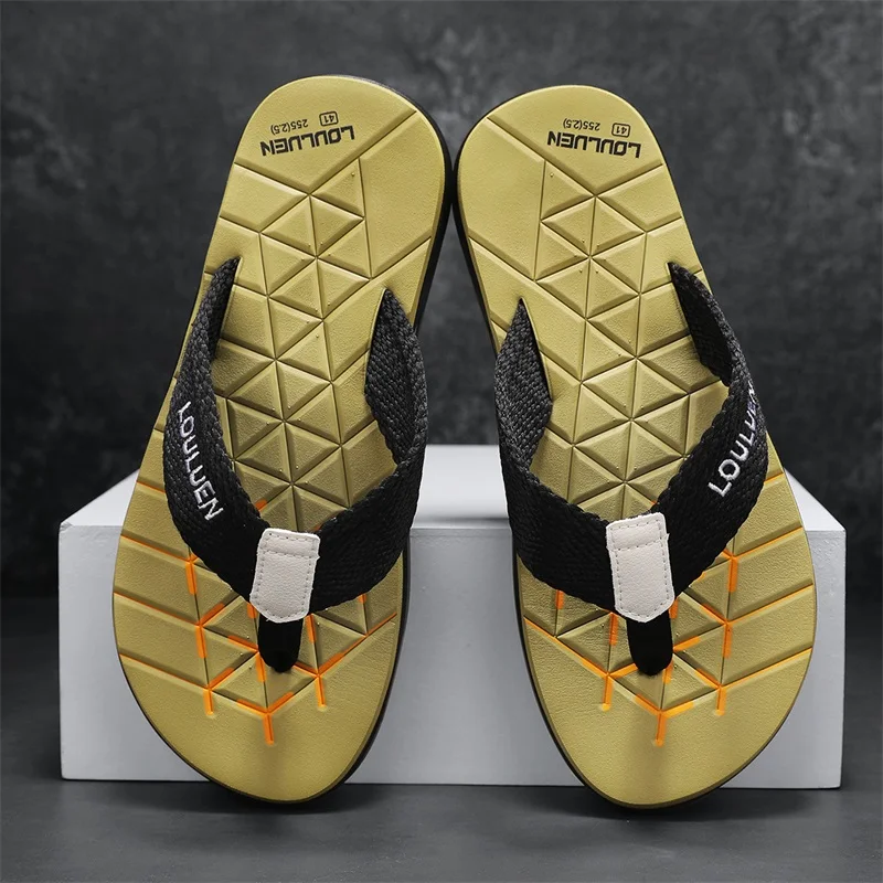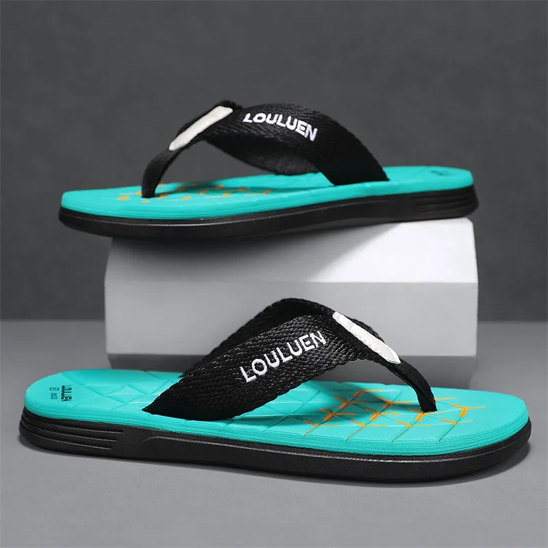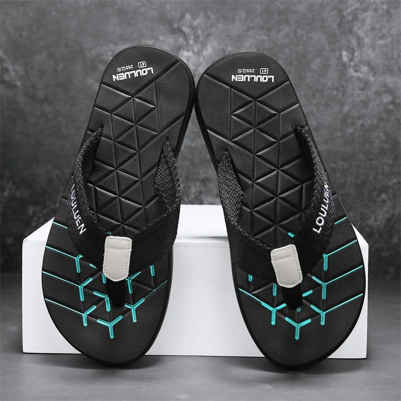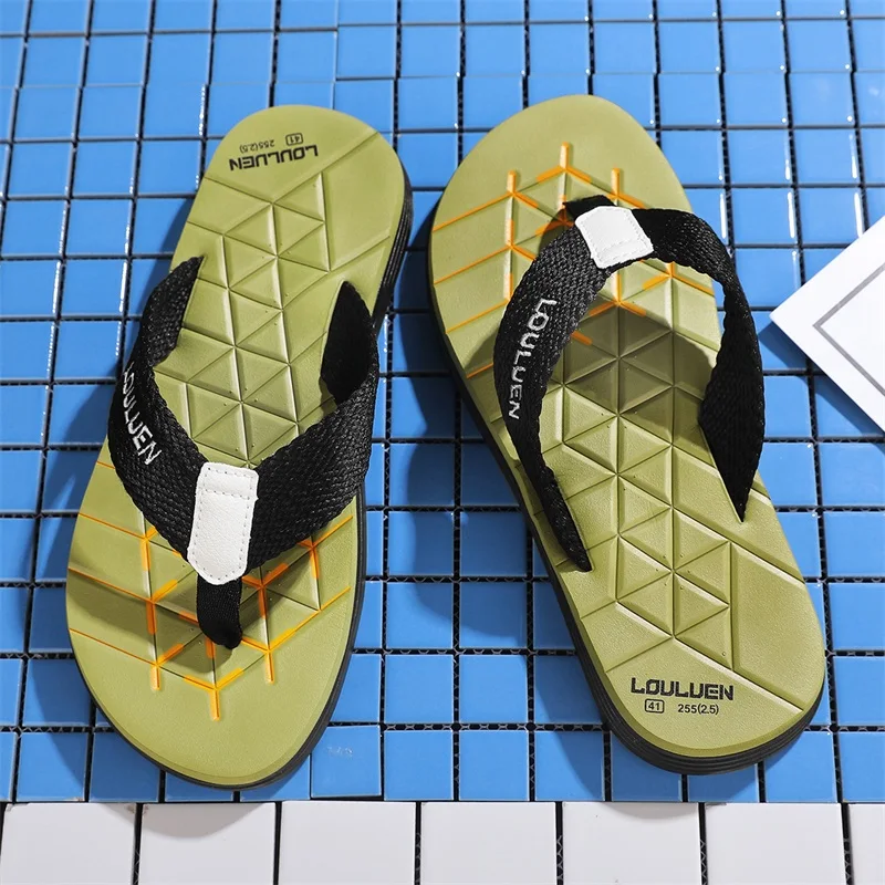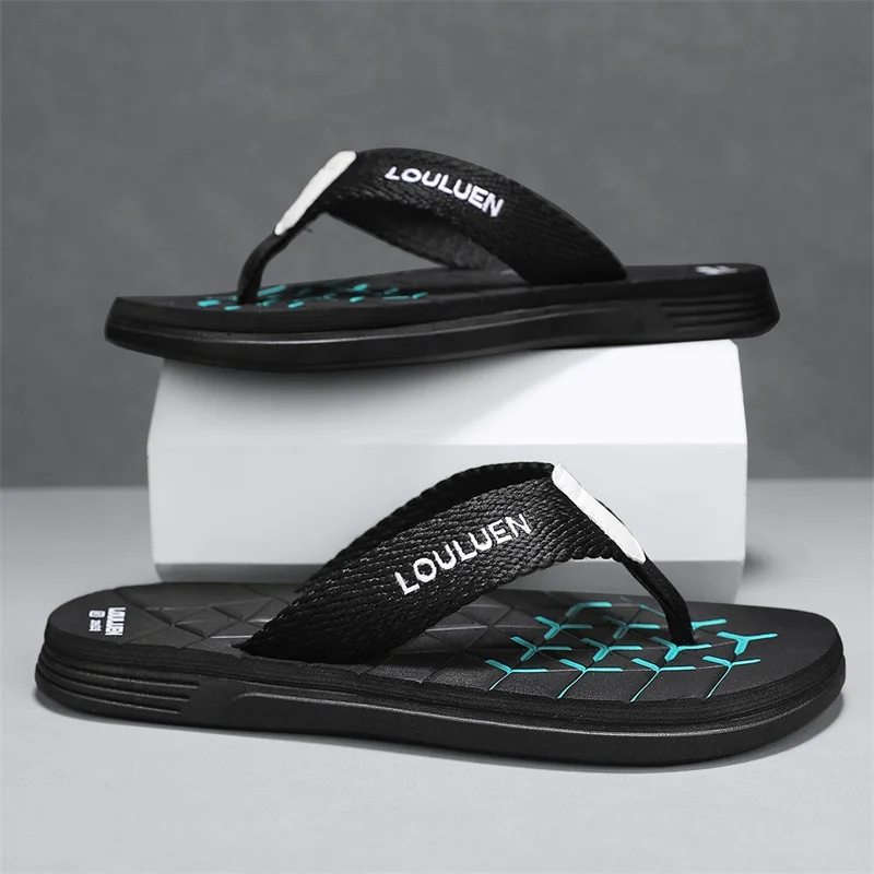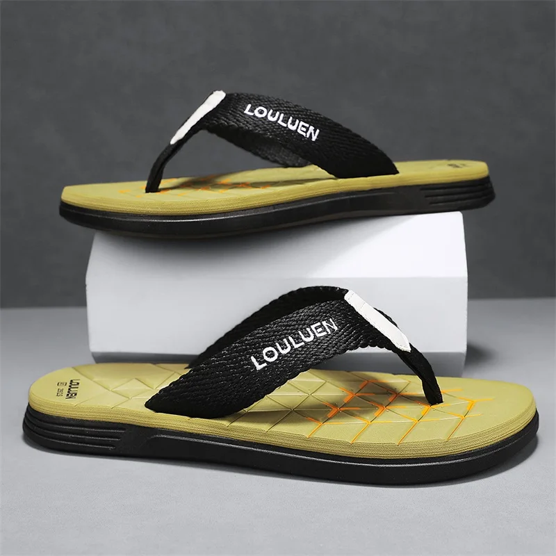 Men’s shoes, flip flops, flip flops, men’s summer casual outdoor wear, one foot on men’s shoes, men’s flip flops, summer beach f