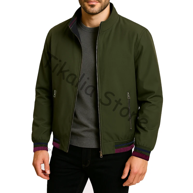 Men’s Stand Collar Bomber Jacket Lightweight Windbreaker Coat with Zipper Pockets Casual Outerwear for Spring Fall Daily Coats