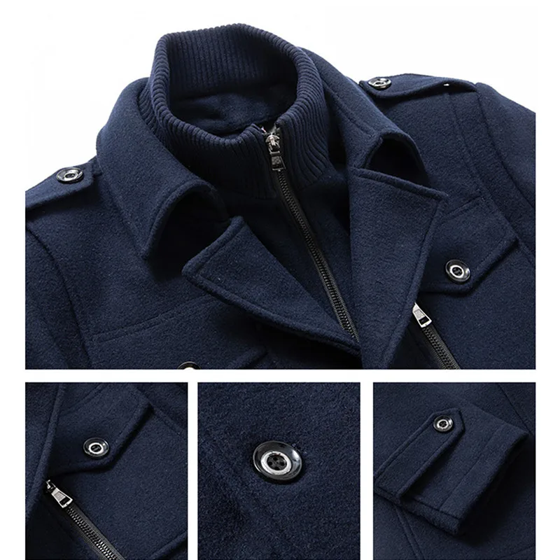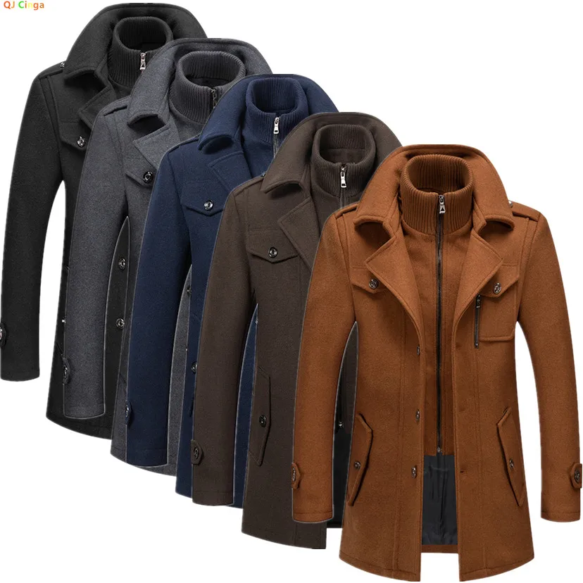 Men’s Wool Blend Double Collar Gray Overcoat Winter Business Casual Topcoat Camel, Dark Blue, Burgundy, Black Option Coats