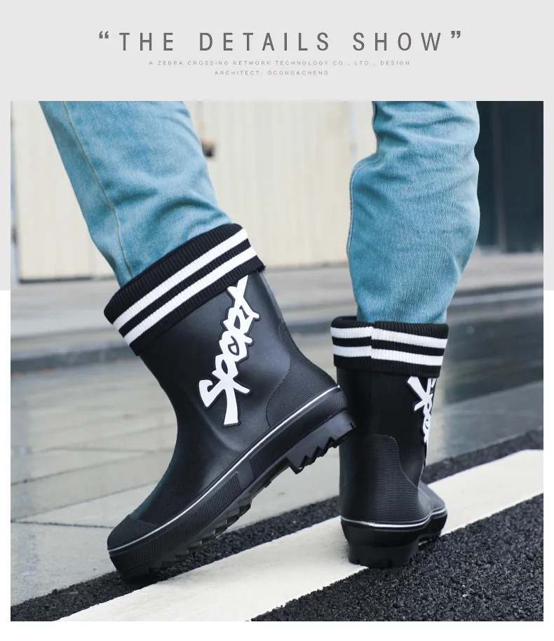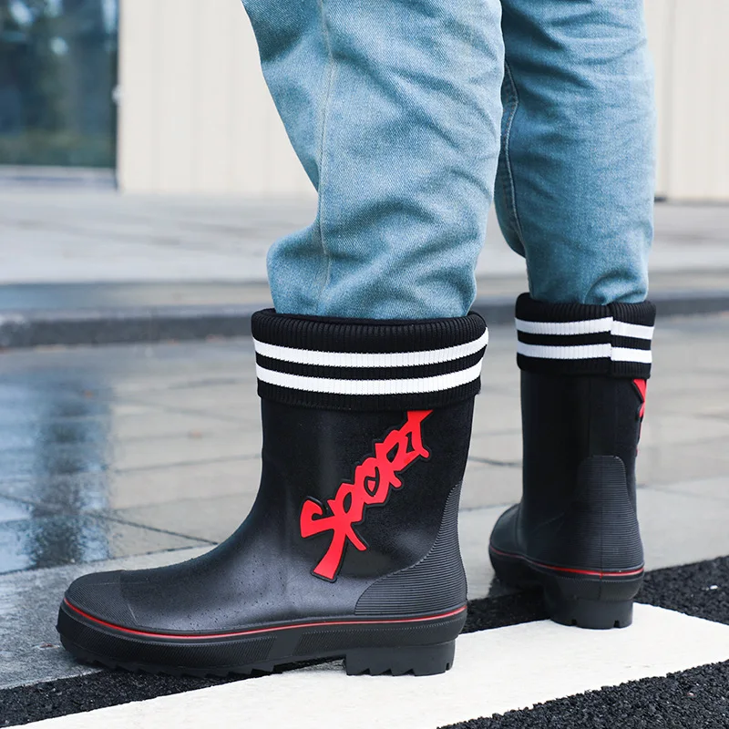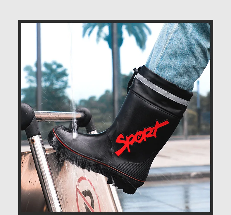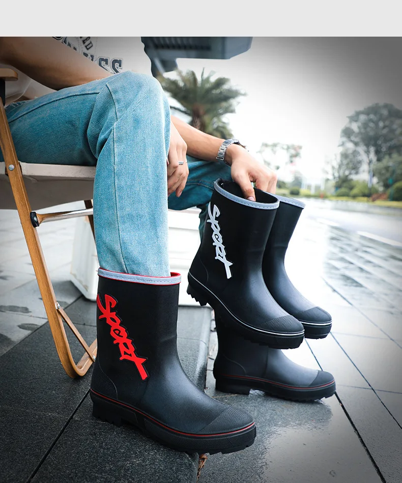 Mid-calf Rain Boots Men Slip-On Waterproof Rubber Rain Shoes Work Mud Boots Warm Durable Non-Slip Boots Farming Fishing Camp