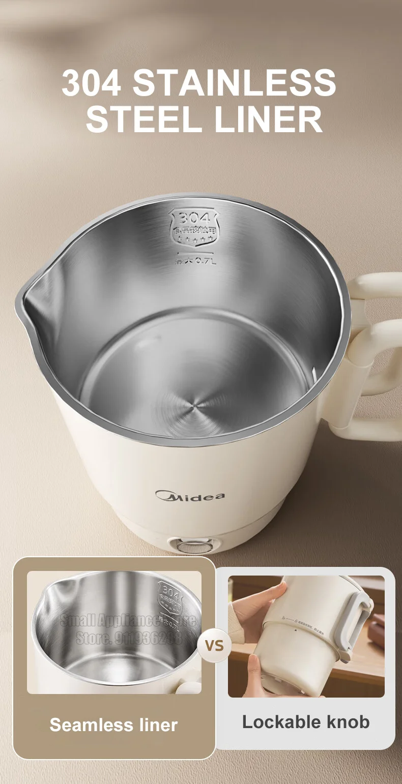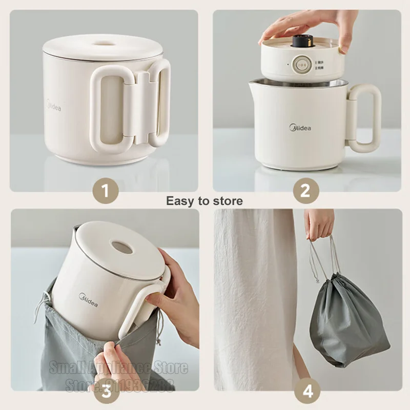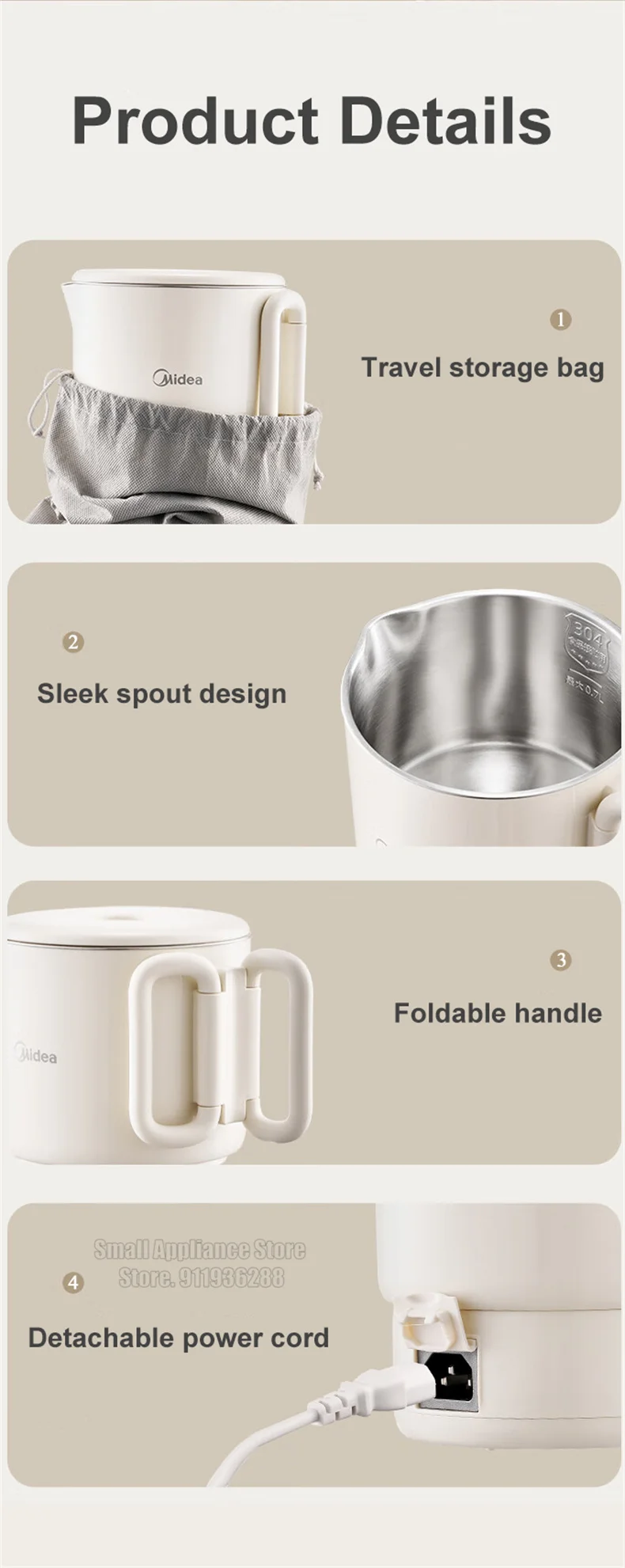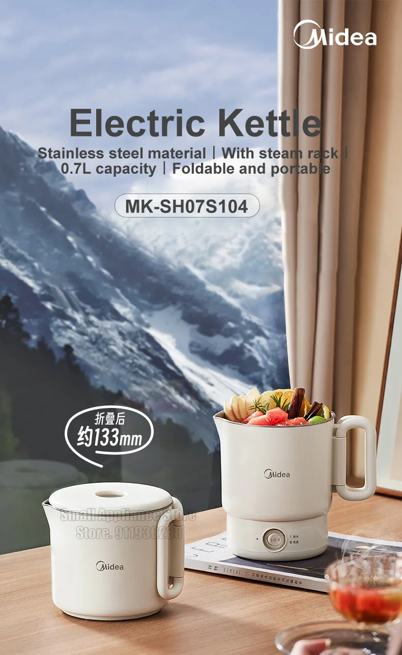 Midea Folding Electric Kettle 700ML Stainless Steel Water Boiler 220V Portable Multi Cooker 600W Heating Foldable Noodle Pot