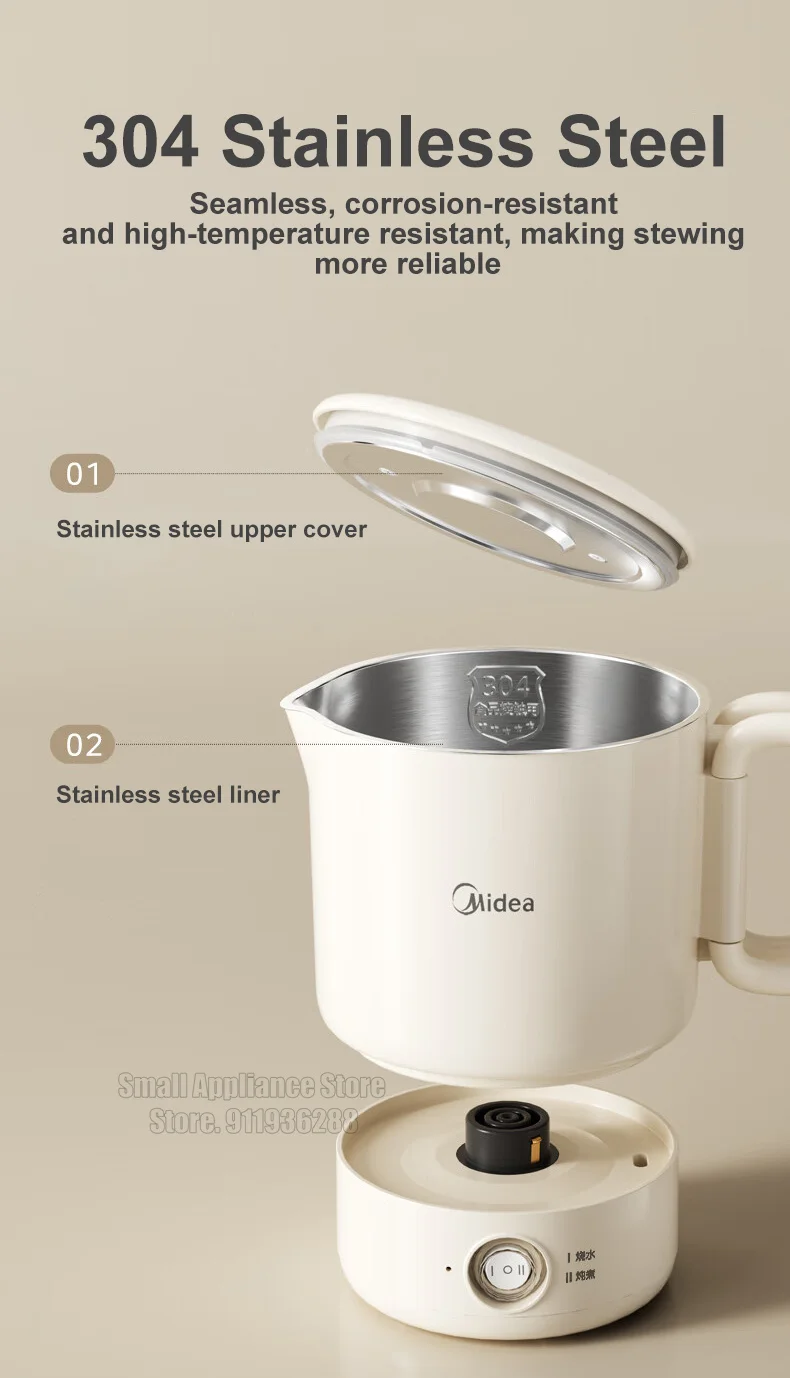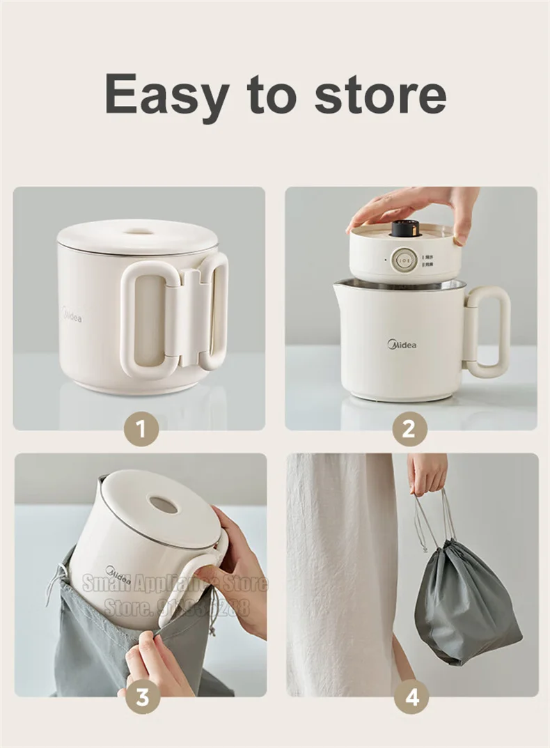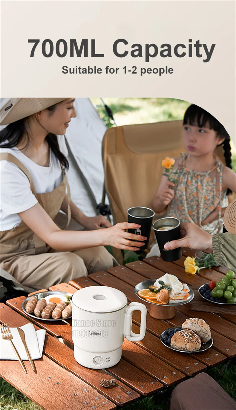 Midea Folding Electric Kettle 700ML Stainless Steel Water Boiler 220V Portable Multi Cooker 600W Heating Foldable Noodle Pot