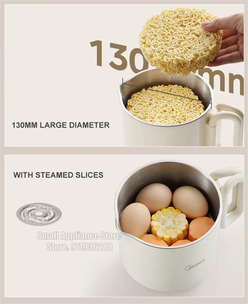 ●Multi-functional (function selection: 1: boil water. 2: stew.), 130mm large diameter, can boil water, stew, steam, etc.