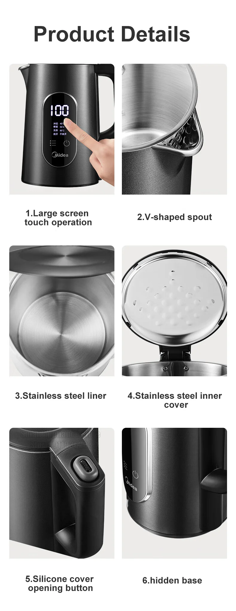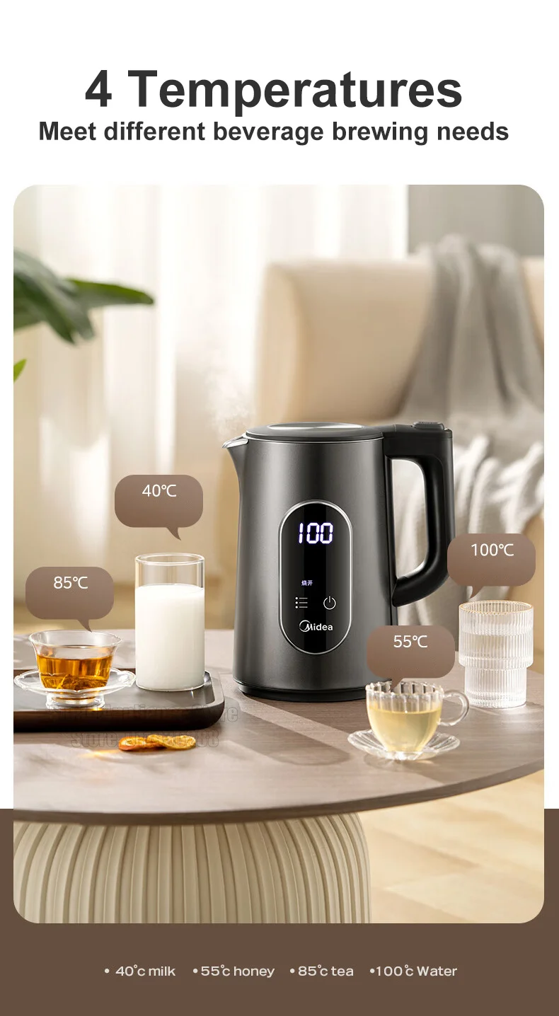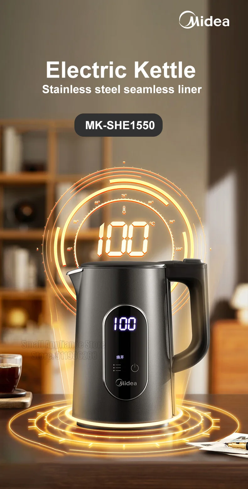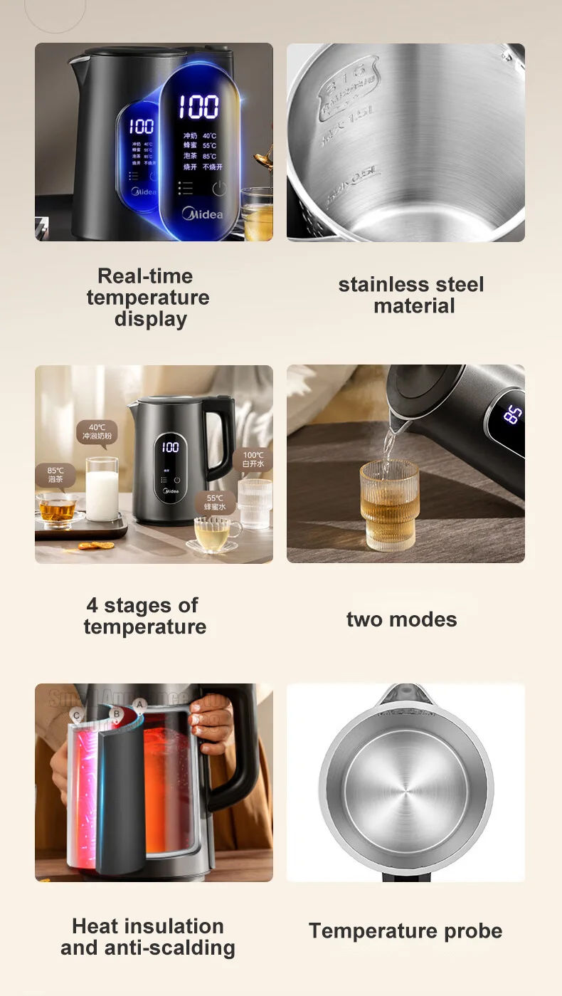 Midea Smart Electric Kettle 1.5L Portable Stainless Steel Teapot Multi-stage Temperature Warm Water Boiler Household Appliances