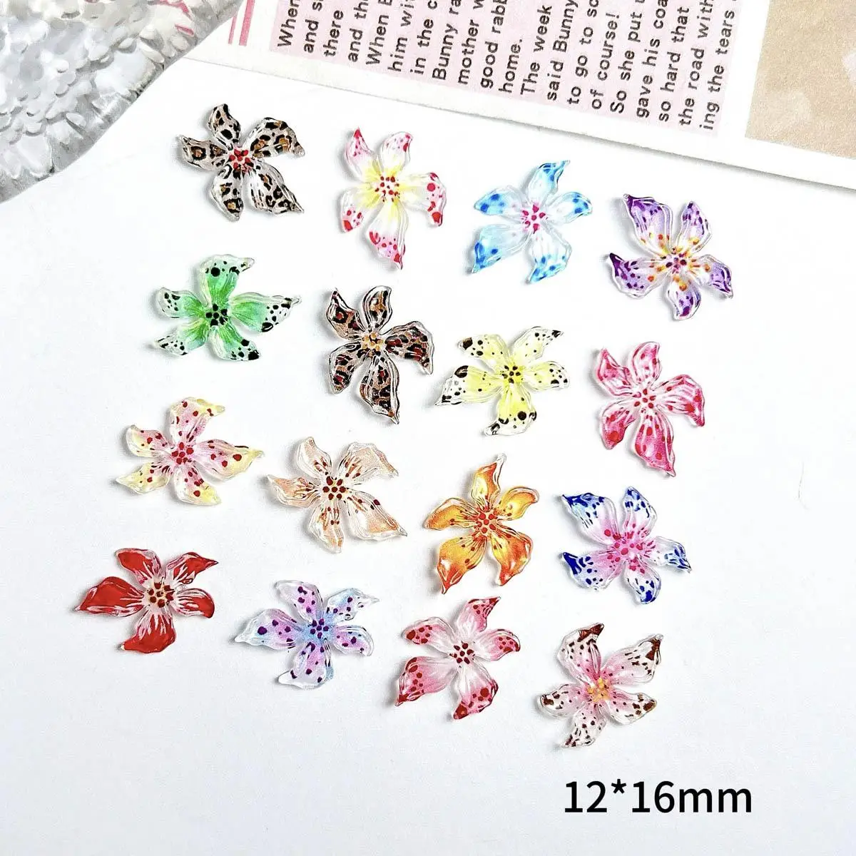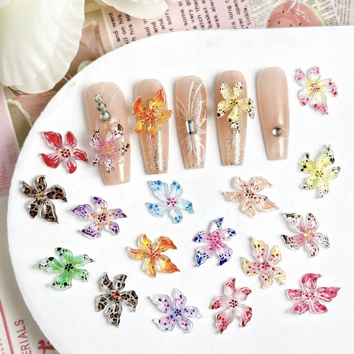 Mixed 3D Resin Gradient Colorful Transparent Lily Nail Art Decoration Bizarre Style Spotted Flower Nail Charms For Manicure DIY