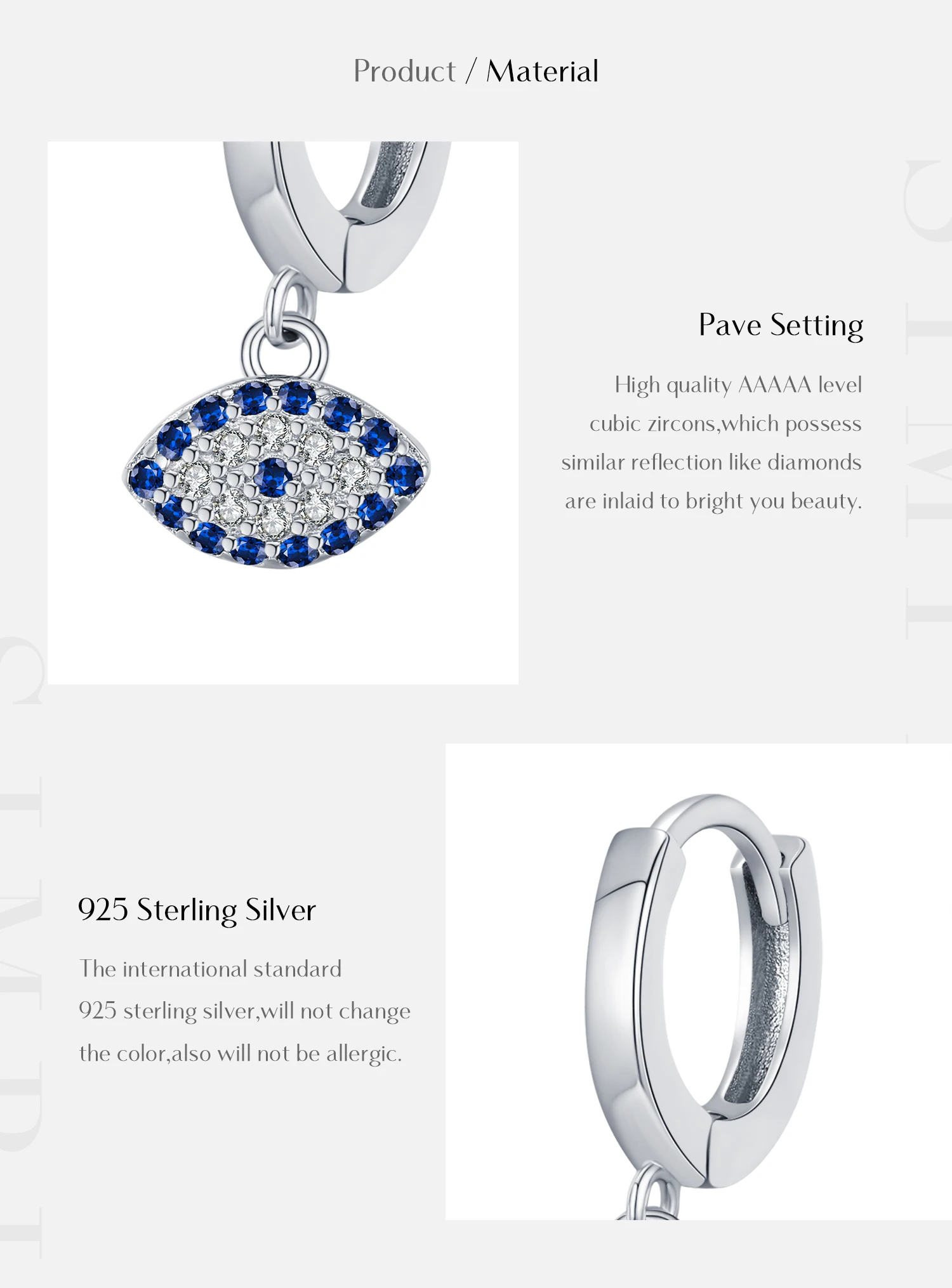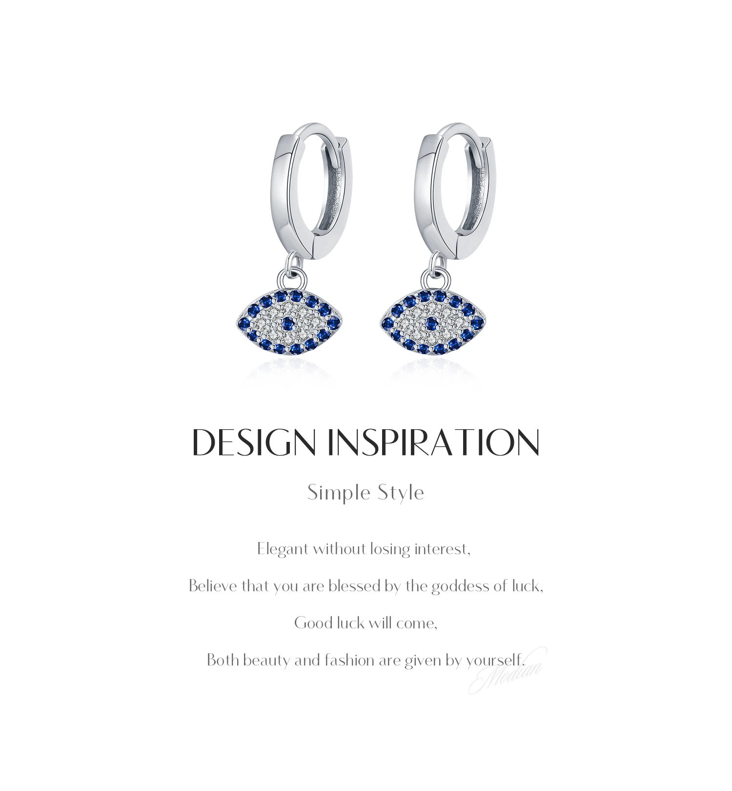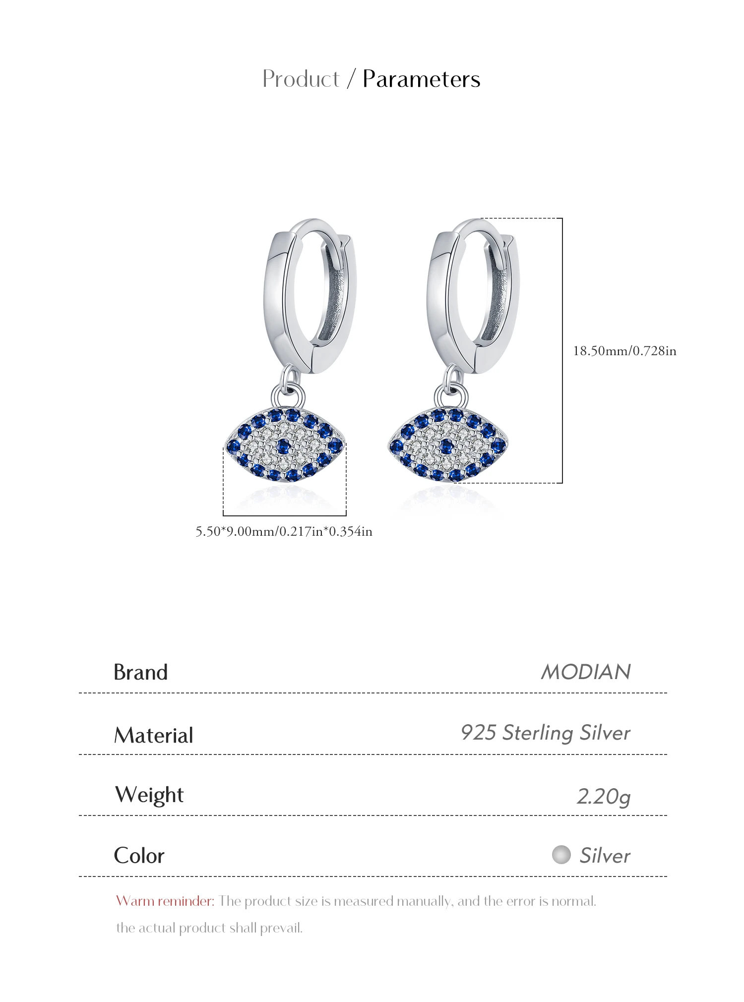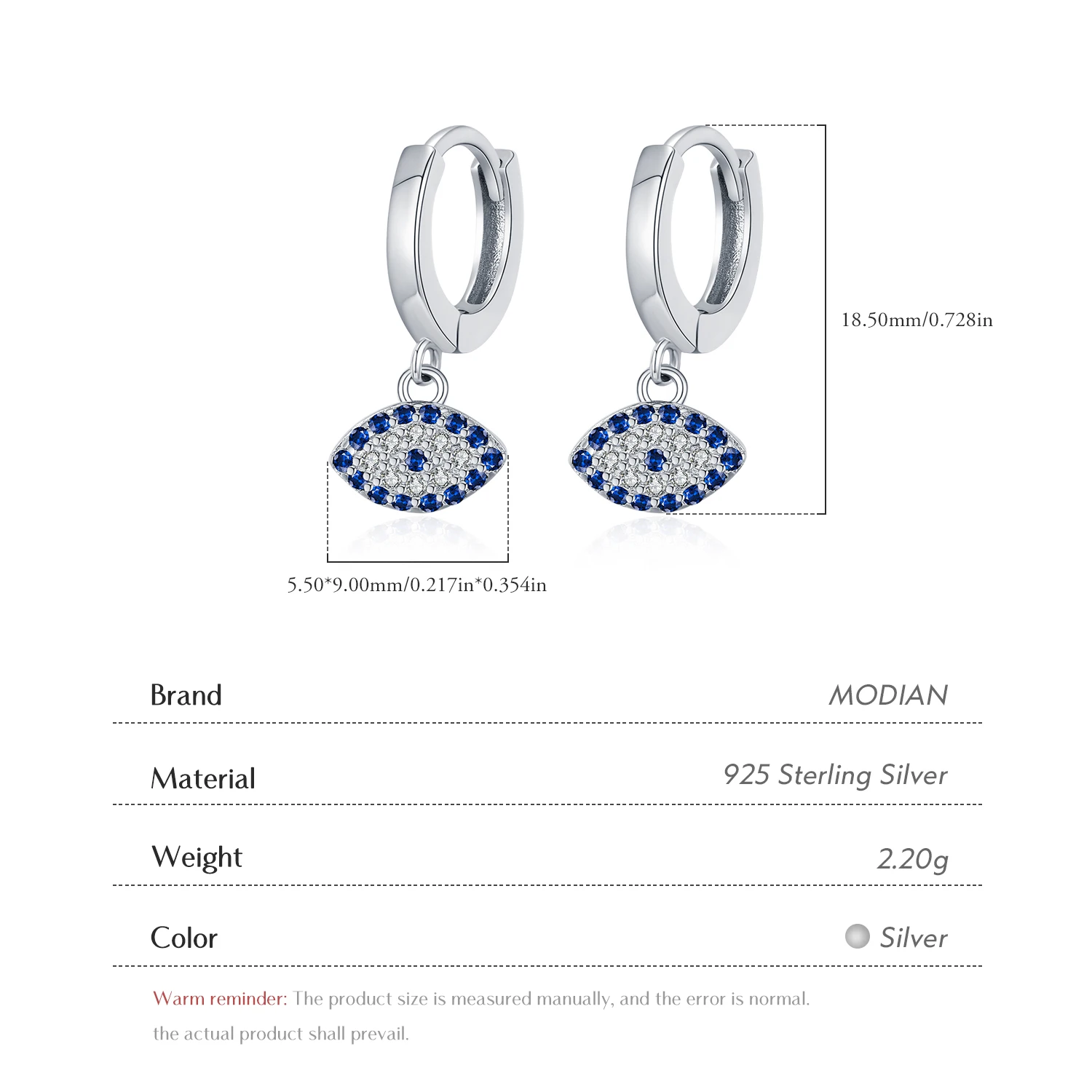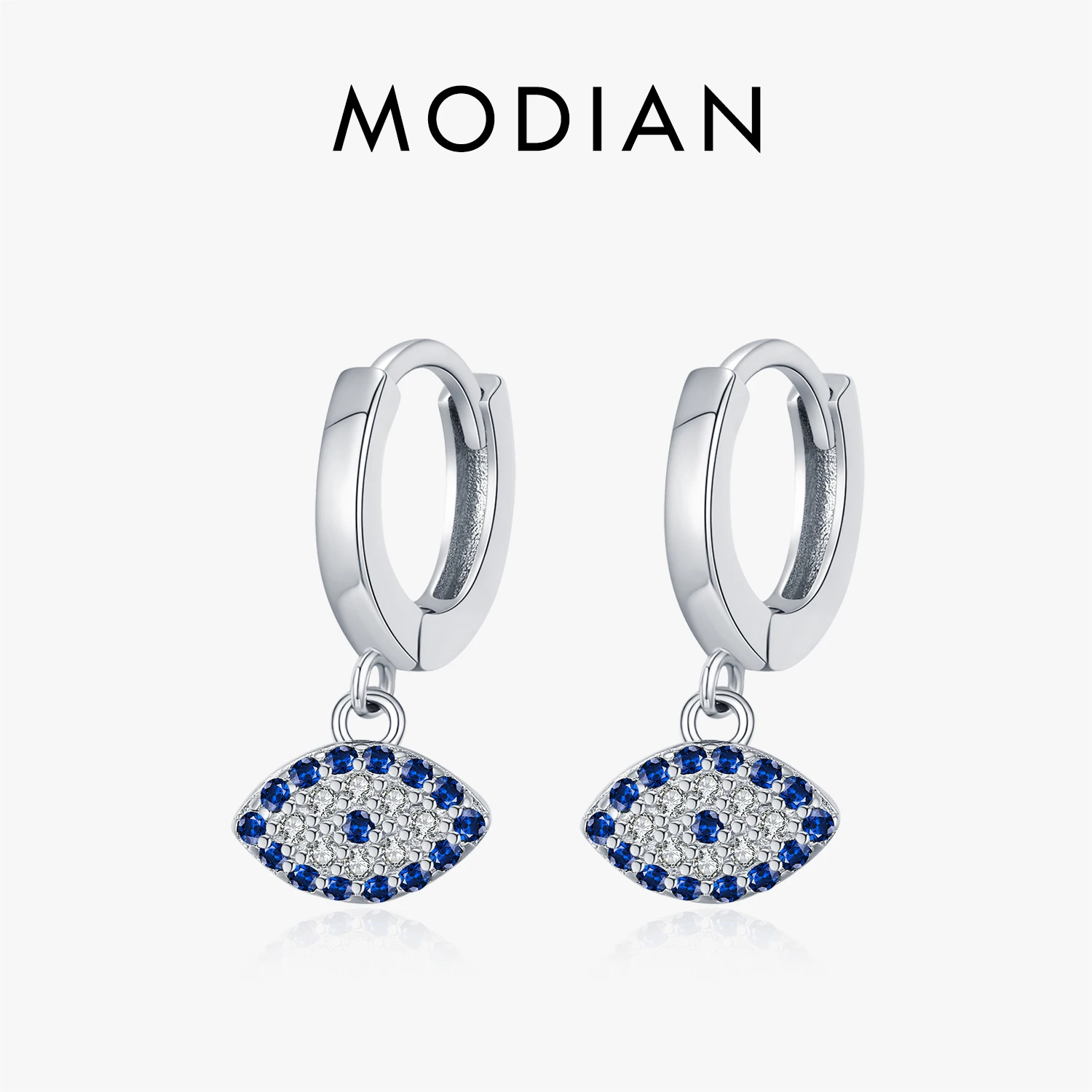 MODIAN 925 Sterling Silver Exquisite Blue Eyes Zirconia Swing Hoop Earrings Classic Vacation Ear Buckle For Women Fine Jewelry