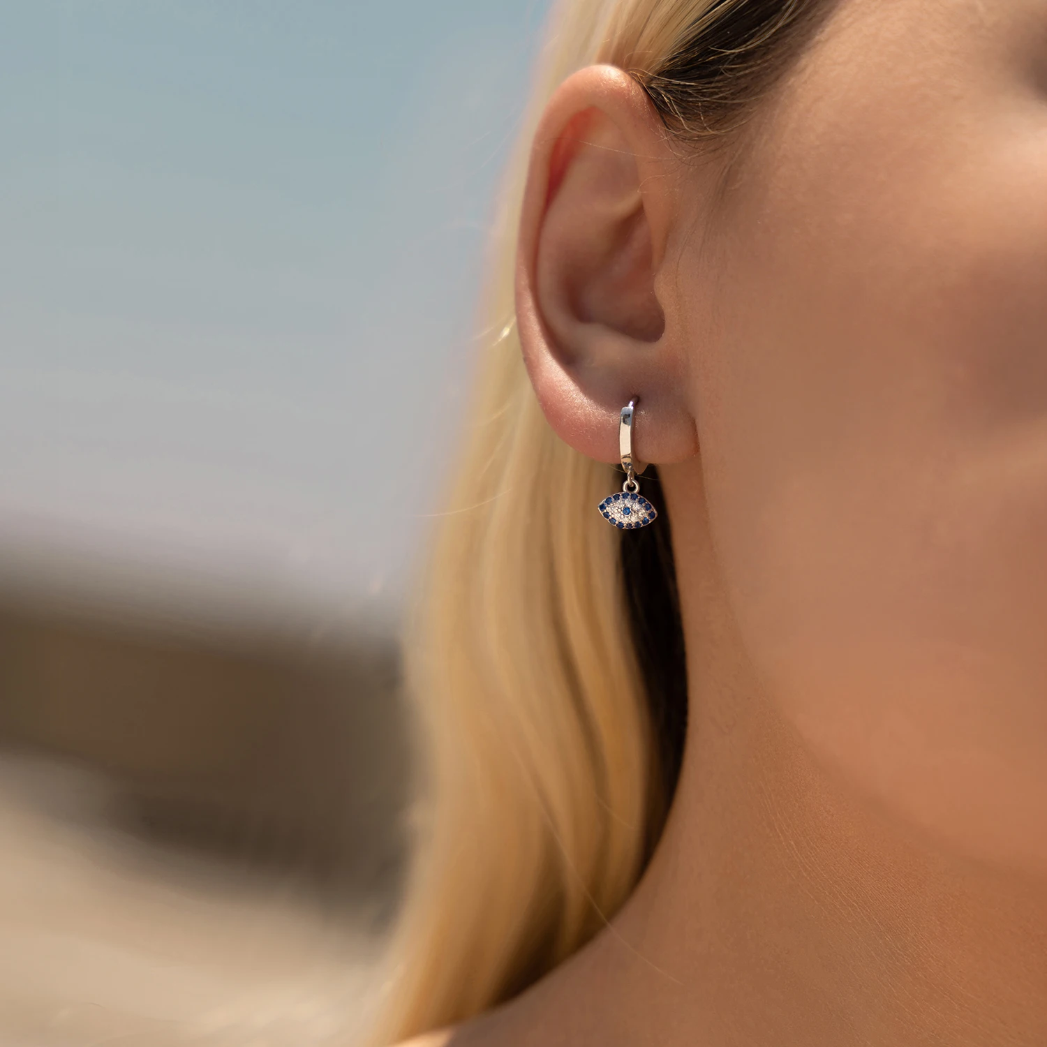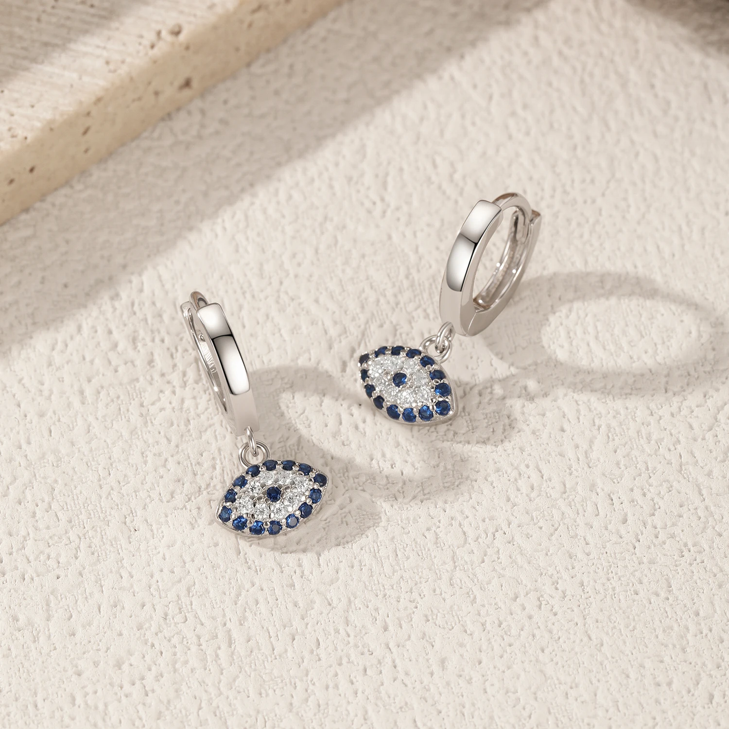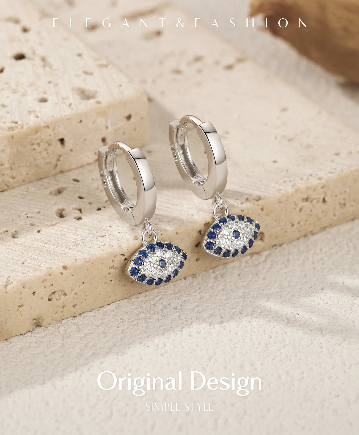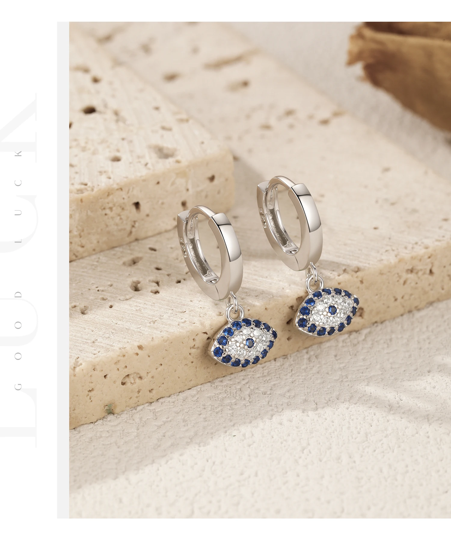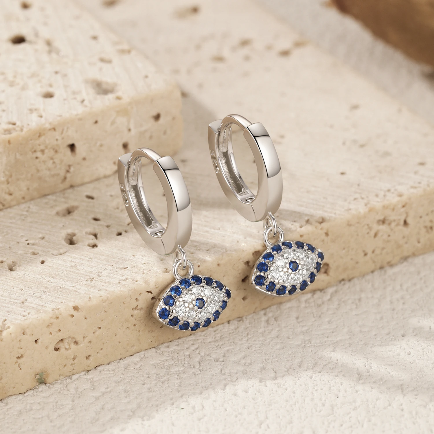MODIAN 925 Sterling Silver Exquisite Blue Eyes Zirconia Swing Hoop Earrings Classic Vacation Ear Buckle For Women Fine Jewelry