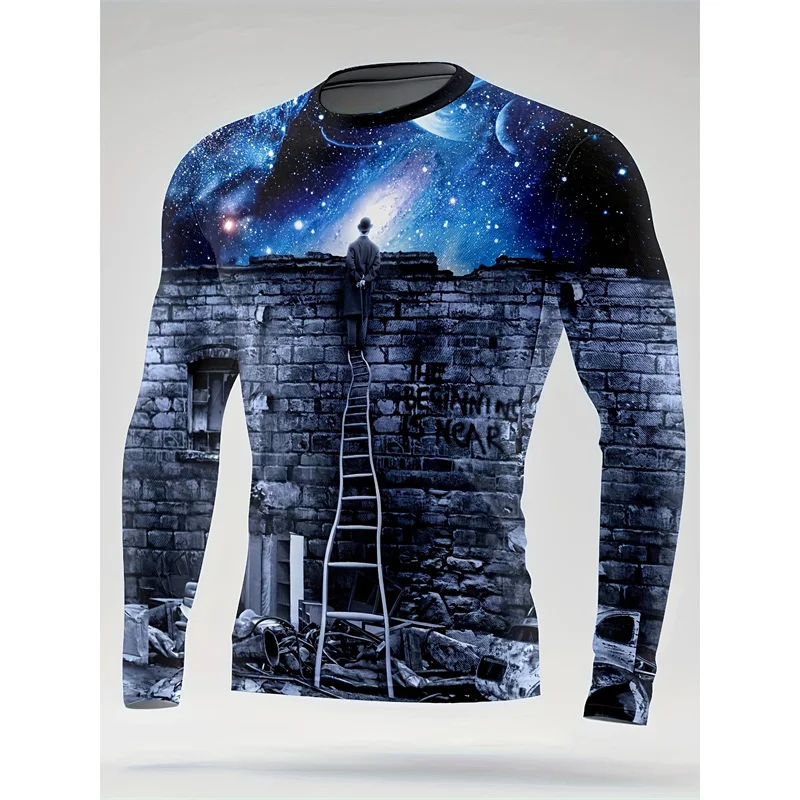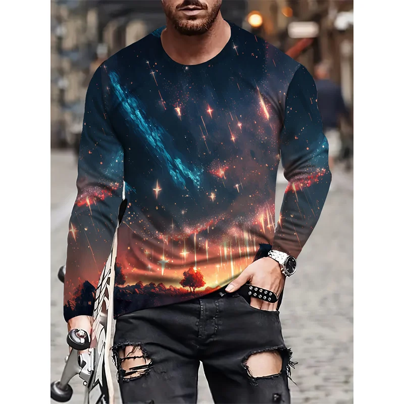 Mountain Water Ship 3D Print Long Sleeve T-shirts Streetwear Loose Men Women Unisex Harajuku Round Neck Oversized TShirt Clothes