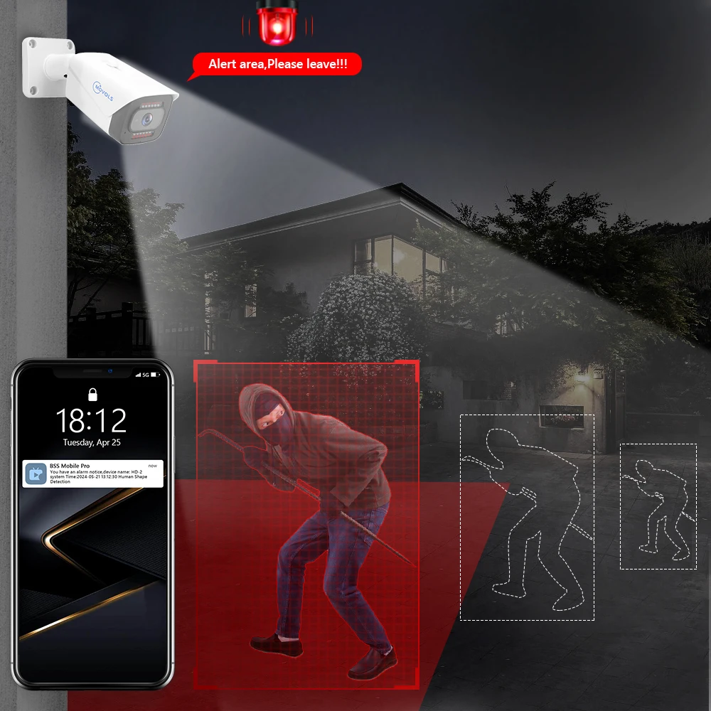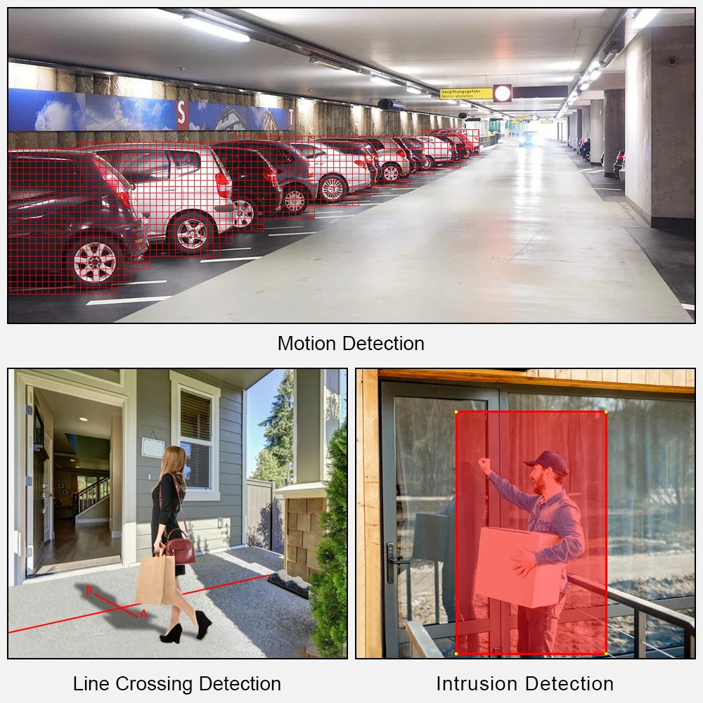 Three lighting modes, in addition to normal daylight mode and night vision mode, when an alarm occurs at night, the camera will automatically turn on the white light to increase the exposure, providing you with color images without losing any details