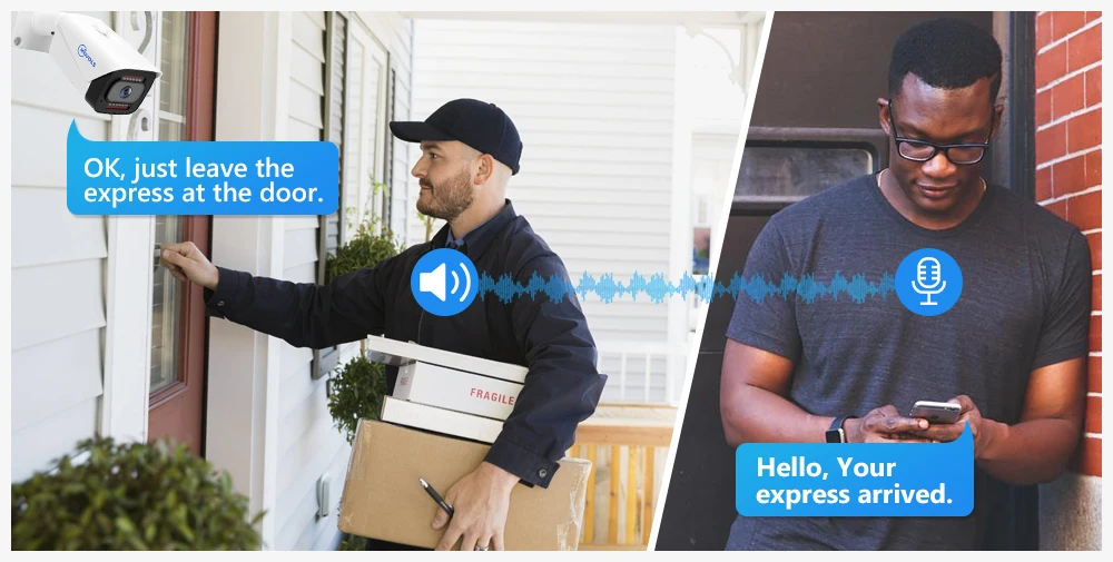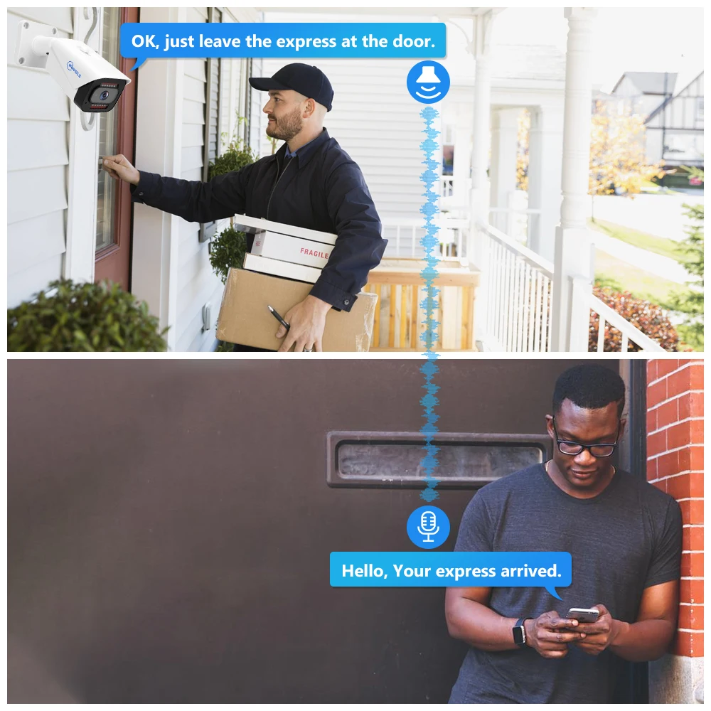 Two-way audio feature allows you to listen and speak through the camera.With microphone and speaker, you can better understand the details that are happening around your house.