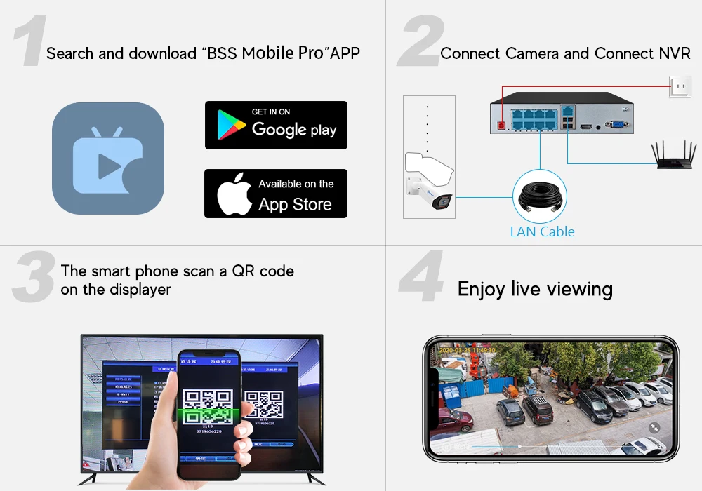 DVR Kits Adopts advanced H.265 video compression,reduces 50% file size and keep same quality compared to H.264 one.
