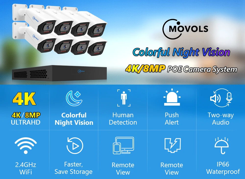 As one of the best home/business security systems, this security system records real-time videos on all channels at 8MP high resolution, much clearer than 1440p and 1080p. All cameras provide incredibly bright and sharp images in real color, which enables you to see all objects very clearly.