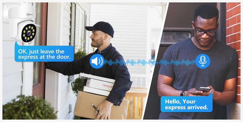 Two-way audio feature allows you to listen and speak through the camera.With microphone and speaker, you can better understand the details that are happening around your house.