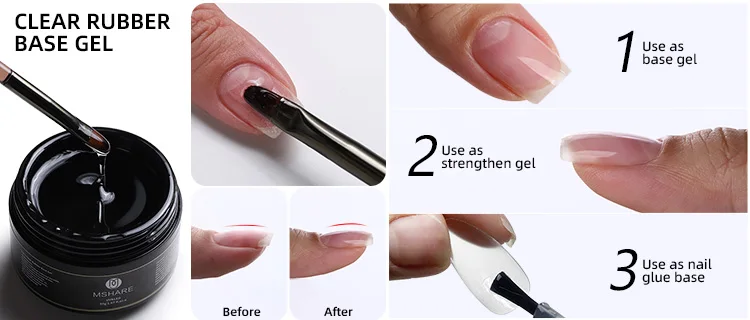 MSHARE Color Rubber Base is a foundation gel like no other. You can strengthen the natural nail, with the ease of applying gel polish. Once you finish applying rubber base, you have the perfect base for your nail art creations.