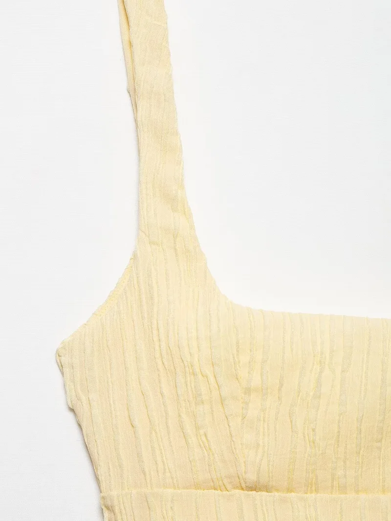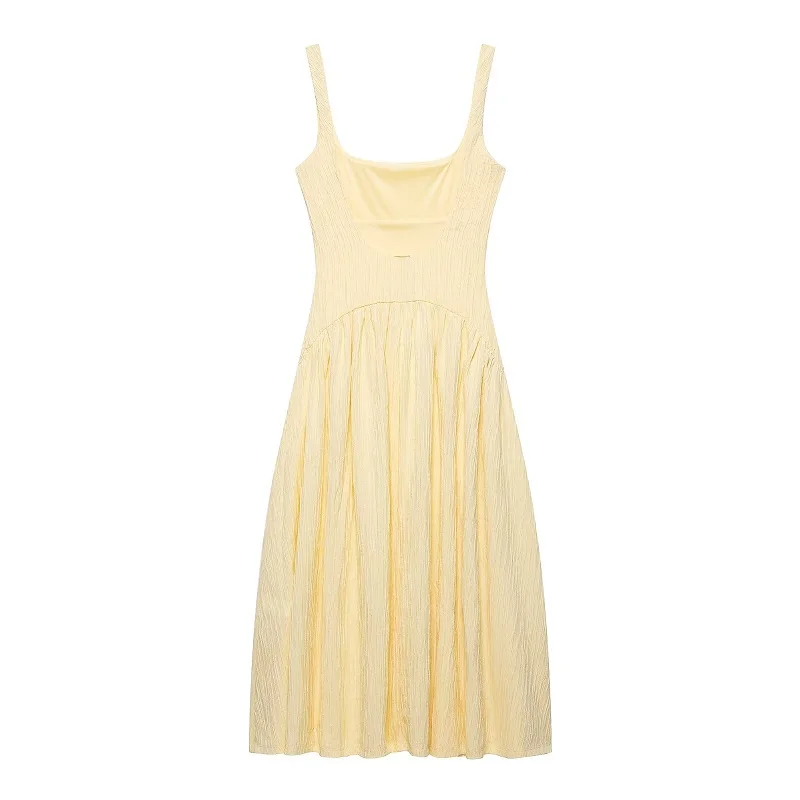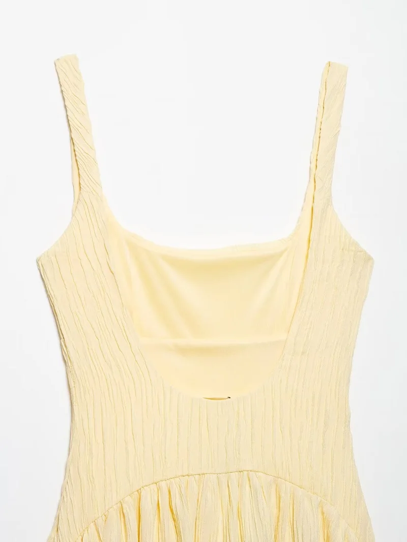 MUJER 2025 Pleated Long Dress Woman Yellow Slip Midi Dress Women Sexy Backless Dresses for Women Chic Beach Women’s Summer Dress