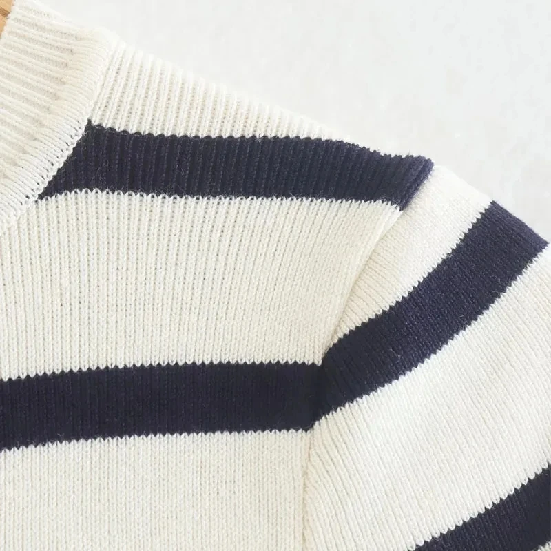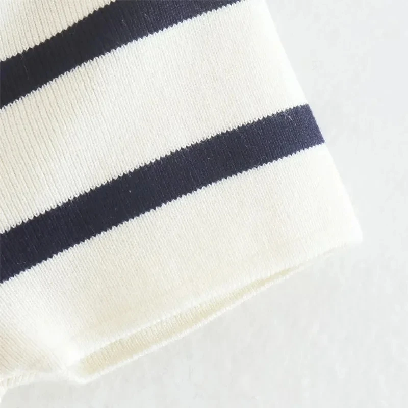 MUJER Striped Knitted Short Sweaters for Women Short Sleeve Jersey Tops Woman 2025 Pullovers Knitwears Crop Sweaters Top Women