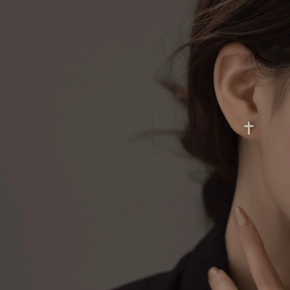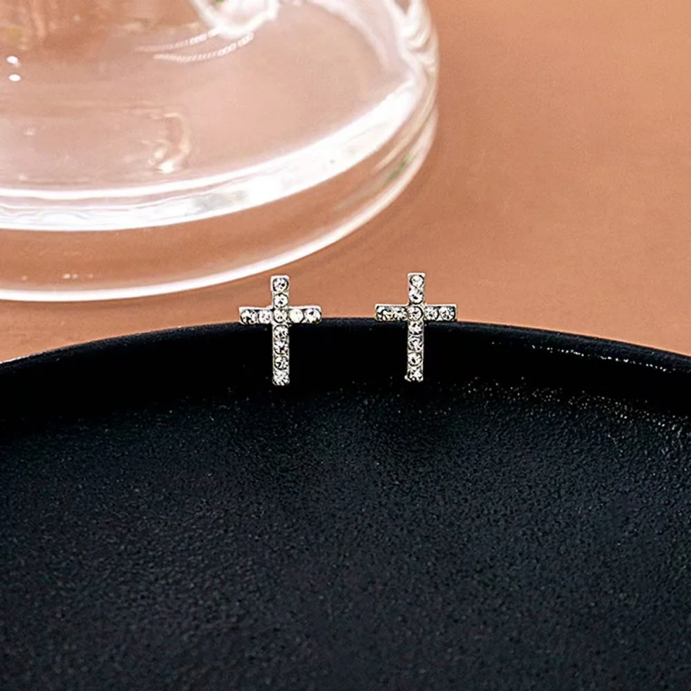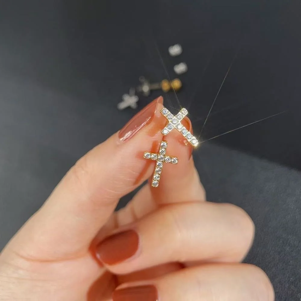 New all rhinestone cross earrings for women, fashionable Korean style perforated earrings for men, Grunge jewelry wholesale