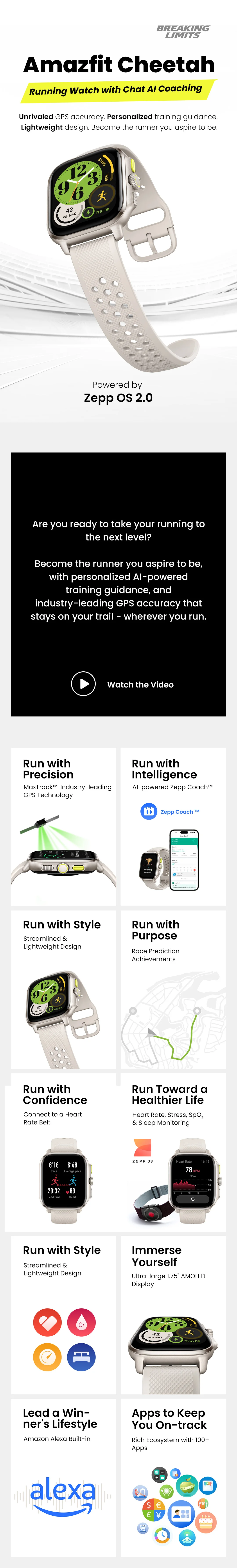 New Amazfit Cheetah Square 44mm Smartwatch Dual-band GPS 150+Sports Mode Monitoring Heart Rate Tracking Smart Watch