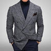 New Autumn Men’s Gray Long-sleeved Suit Jacket, Dark Brown Double-breasted V-neck Blazers, Gentleman’s Casual Coat.