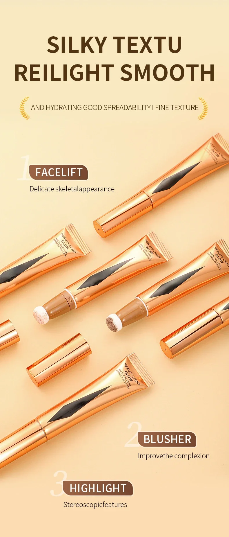 New Cream Bronzer Contour Blusher Beauty Wand Highlighter Blush With Cushion Liquid Face Bronzer Wand Stick Applicator Makeup