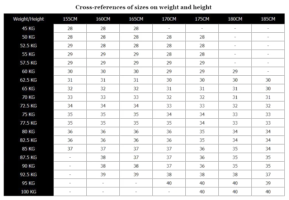 Size 32 Length 106cm, Waist 84cm, Hip 102cm, Thigh 61cm