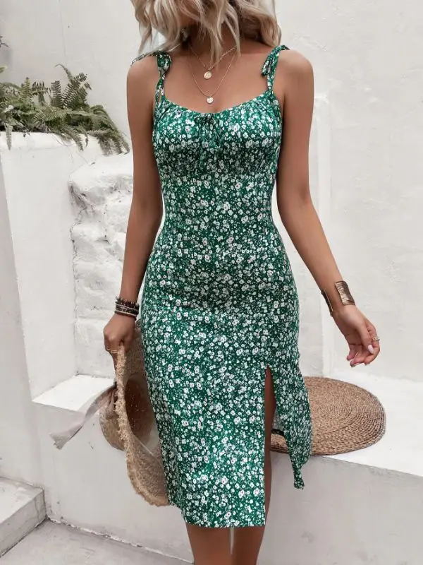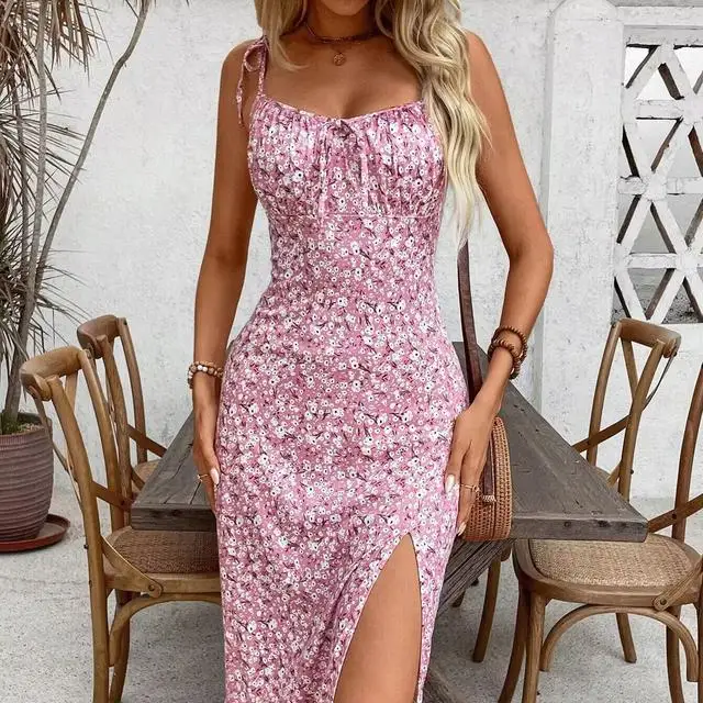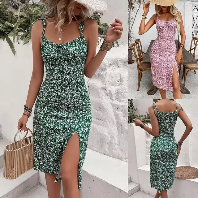 new European and American women’s clothing 2025 summer fashion sexy slim fit temperament elegant floral suspender dress