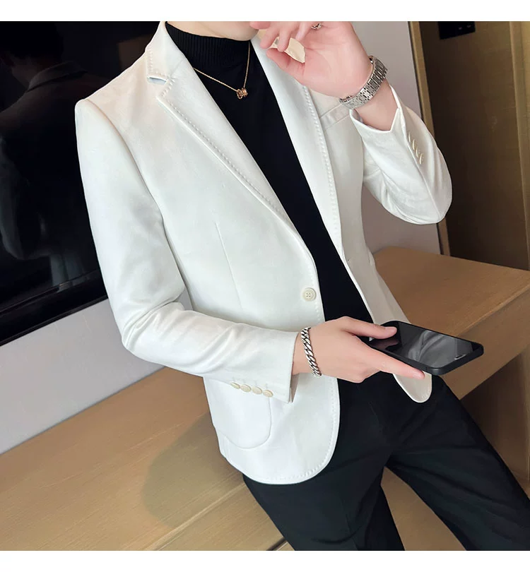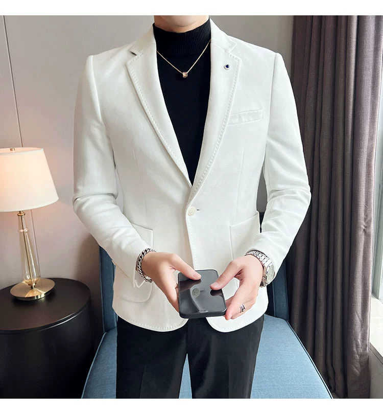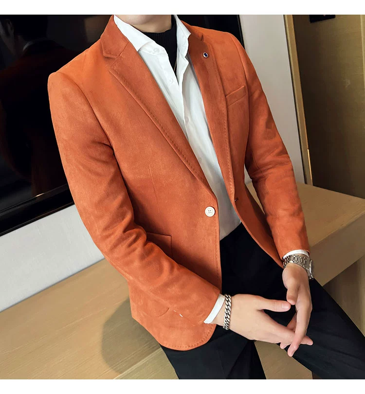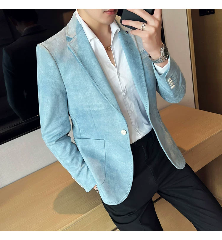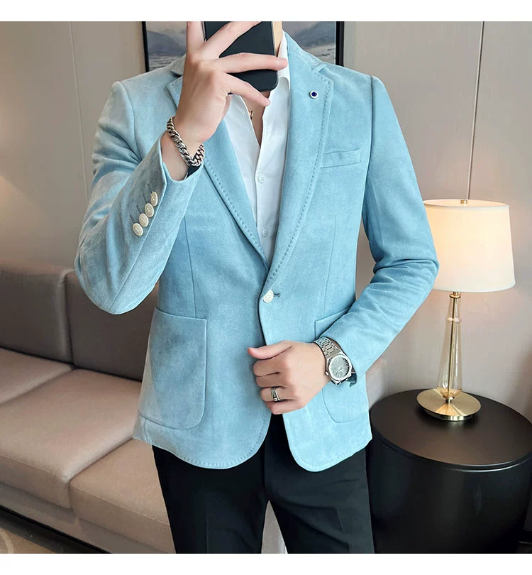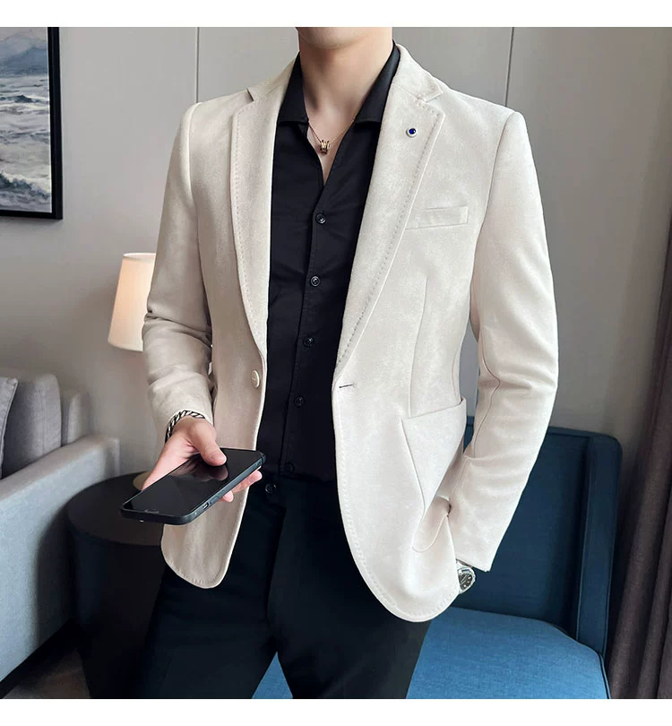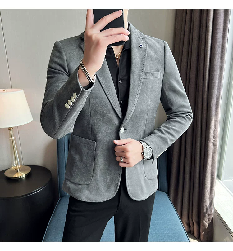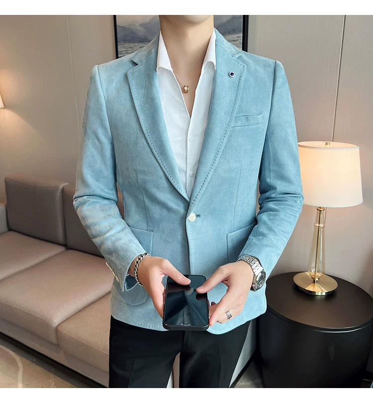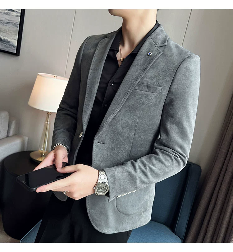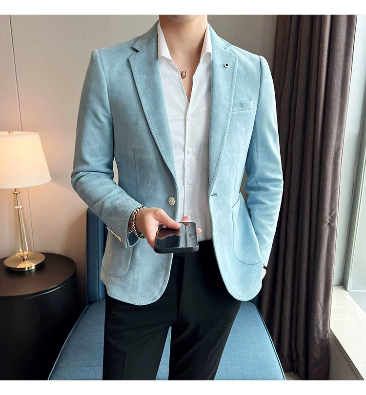 New Fashion Suit Coat Men’s Slim Fit Deerskin Velvet Elegant Luxury Blazer Coat Business Casual Wedding Plus Size Suit 4XL-S