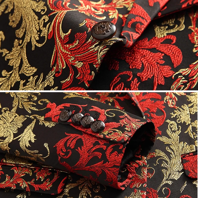 New Men’s Gold Floral Blazer Business Casual Blazer Wedding Dress Red Blazer