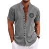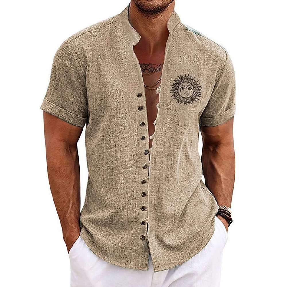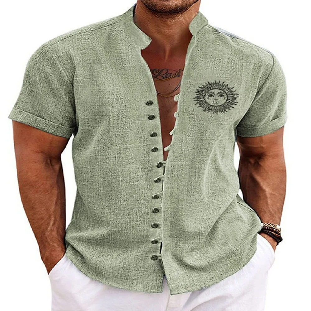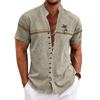 New men’s linen short-sleeved shirt, with a fashionable retro style, ethnic motif printing, comfortable and breathable. Men’s sh