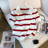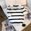 New Striped Pattern Collared Sweater Versatile Short Sleeve Knitted Top For Spring & Summer Women’s Clothing Crop Top