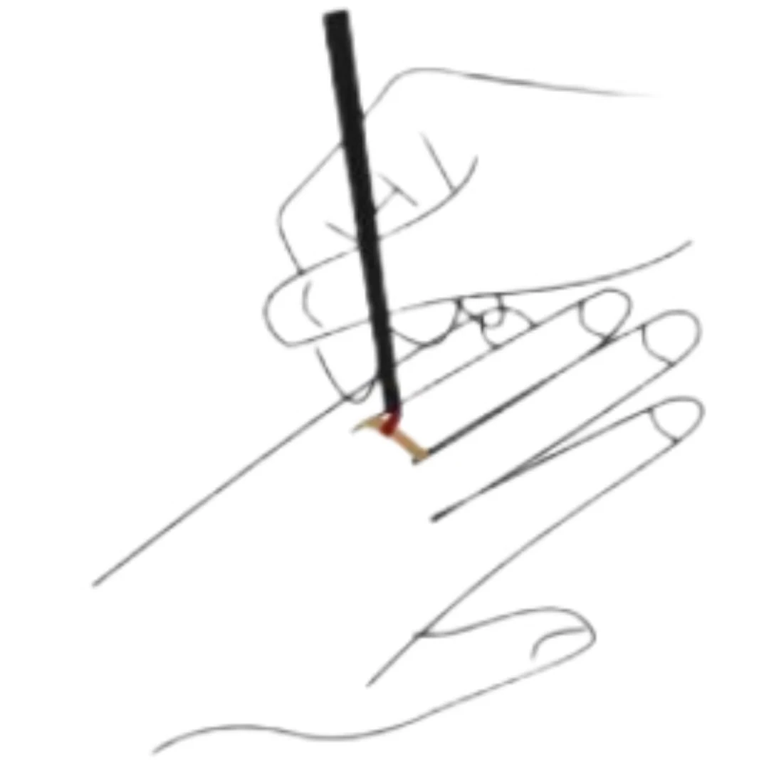 ② Strips of paper should fit at thebase of the fingers and mark theintersection of the strips