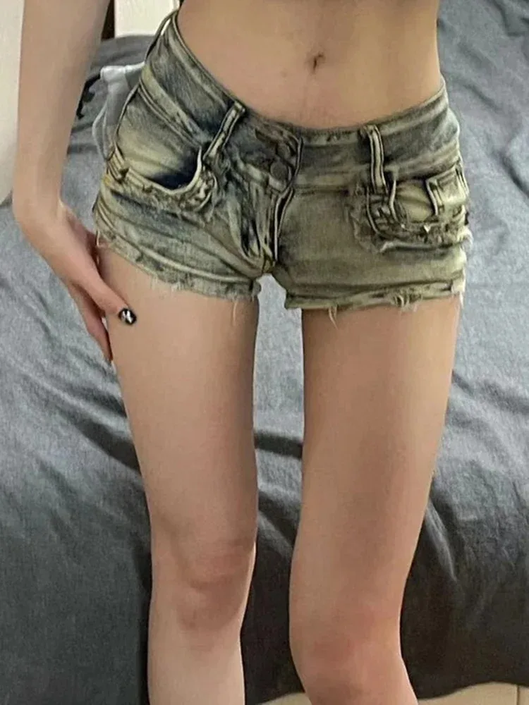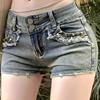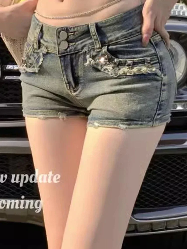 Nostalgic blue retro style hot girl fried street jean shorts female summer new style design small slim slim pack hip hot pants