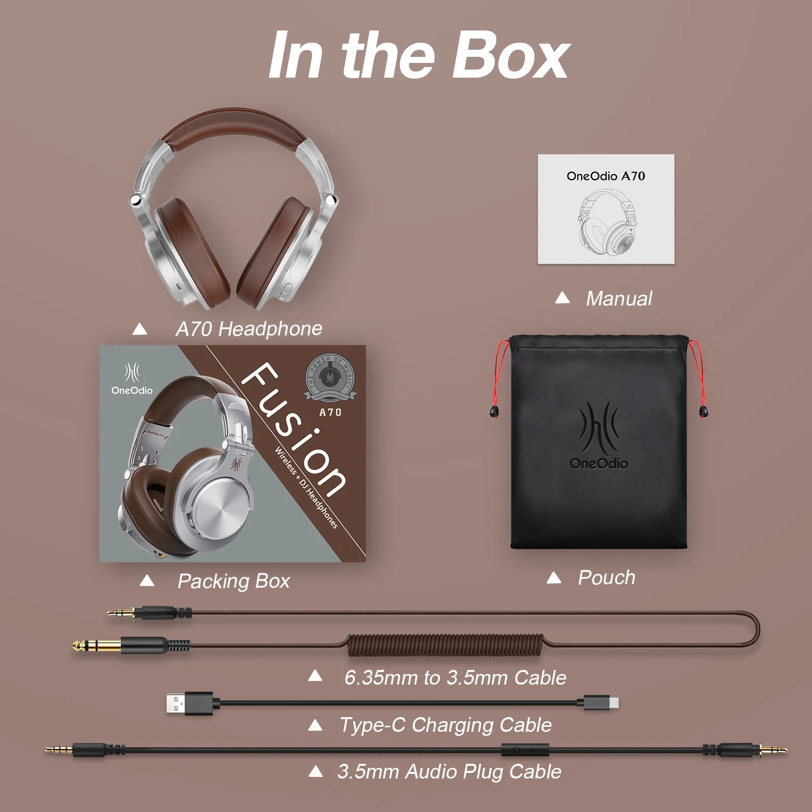 Oneodio Fusion A70 Bluetooth 5.2 Headphones Hi-Res Audio Over Ear Wireless Headset Professional Studio Monitor DJ Headphones 72H