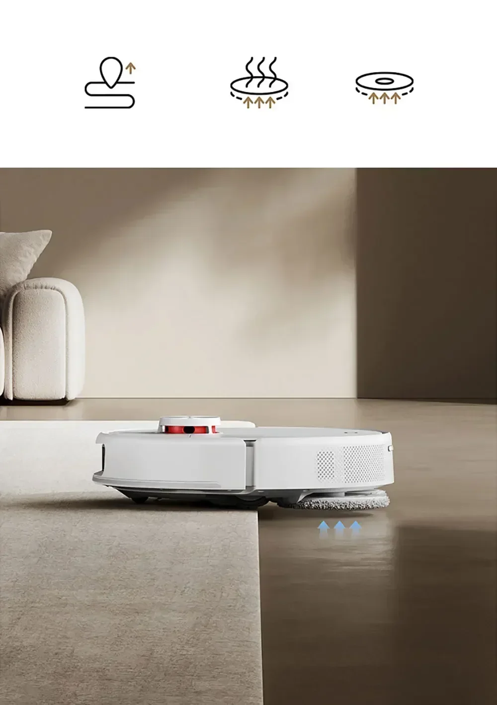 Intelligently recognizes carpets, the mop automatically lifts and increases the suction level, effectively removing floating dust without wetting the carpet. When washing the mop and completing the cleaning task, it will also lift intelligently to avoid secondary pollution of the floor by dirty mops.
