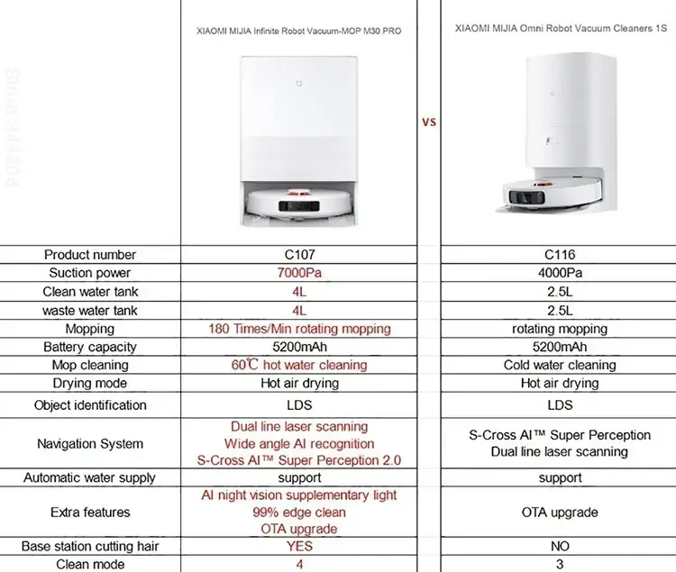 * Mi Home App Remote Control:Allows remote control and customization of cleaning tasks.