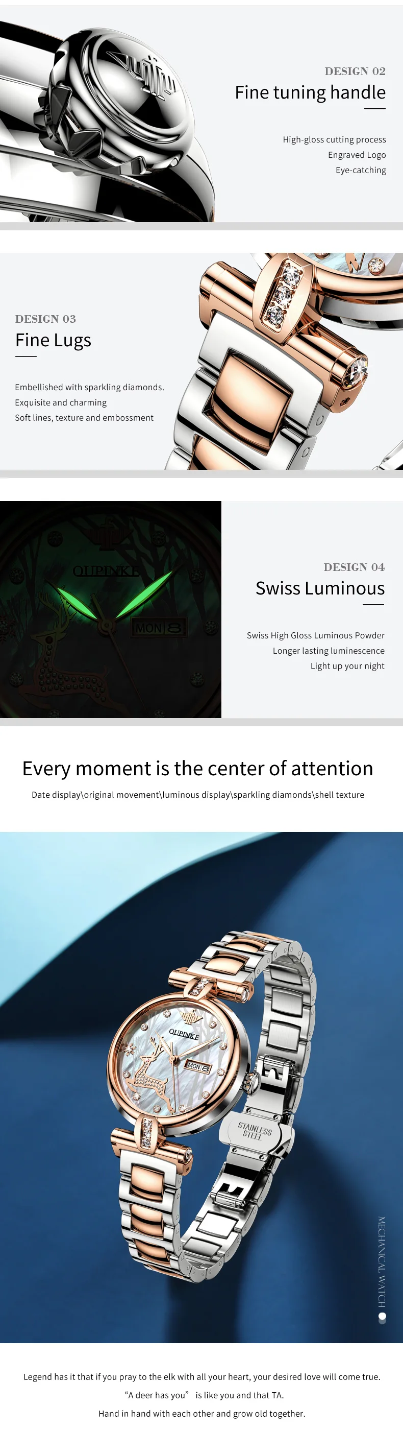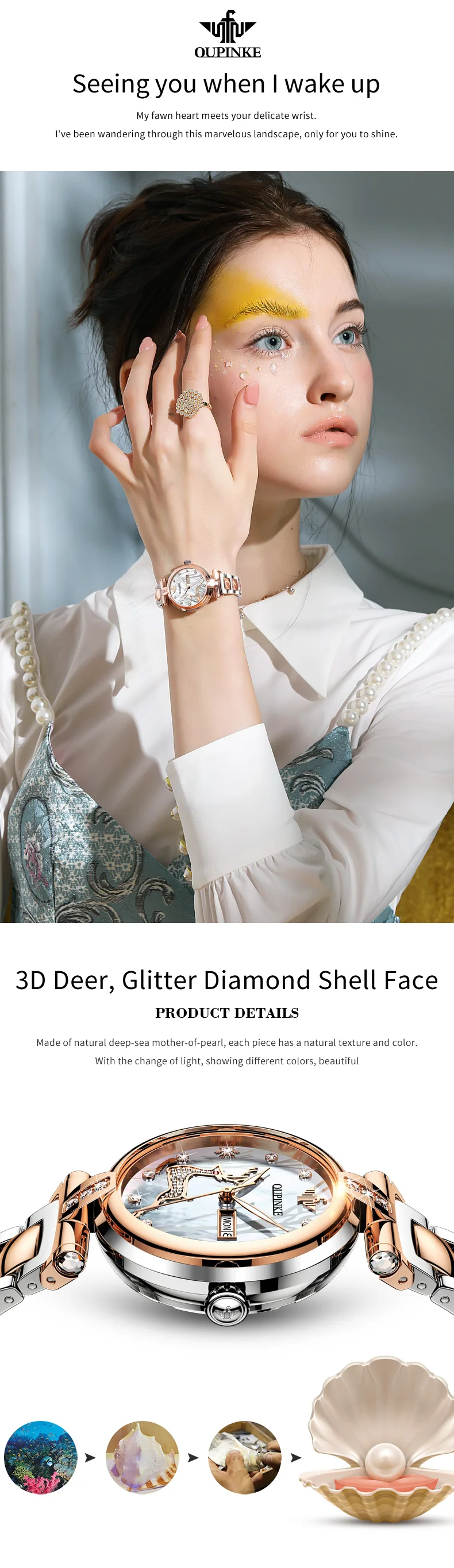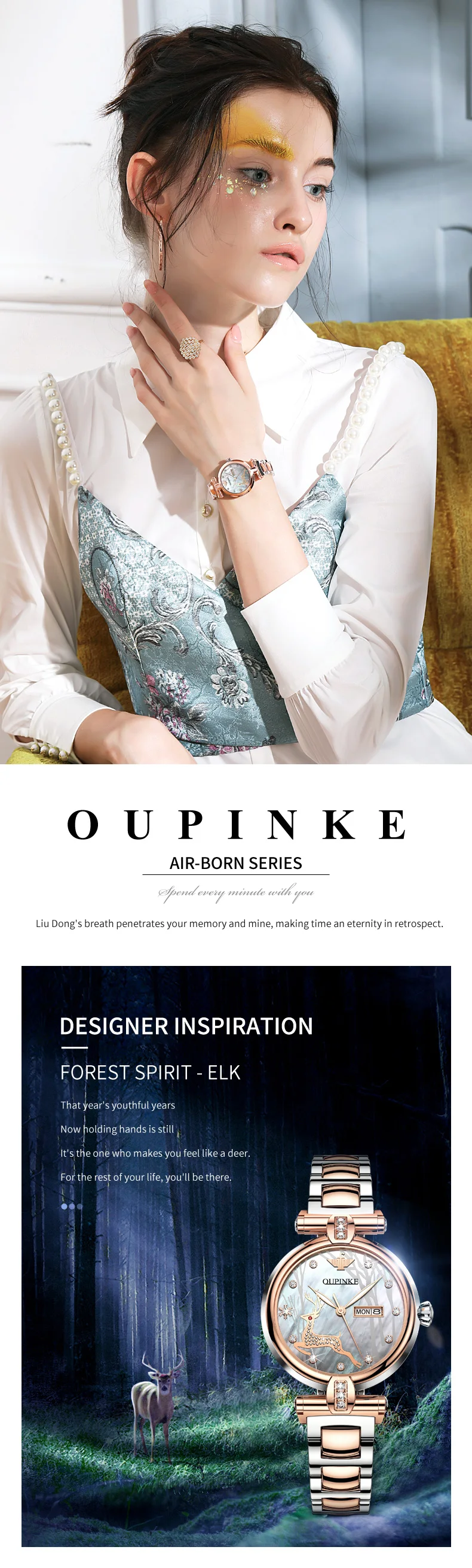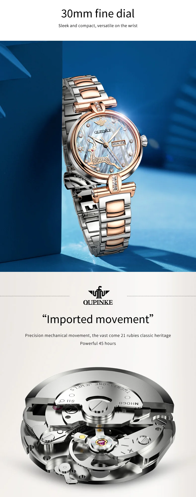 OUPINKE 3180 Women Watch Luxury Brand Automatic Mechanical Stainless Steel Waterproof Watches For Women Gift Box High Quality
