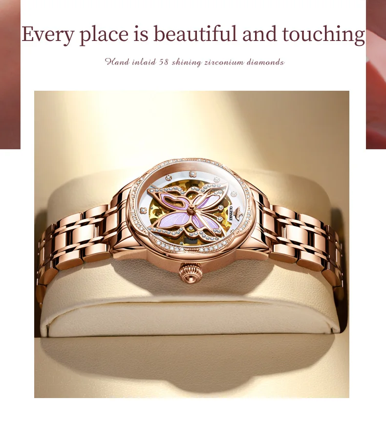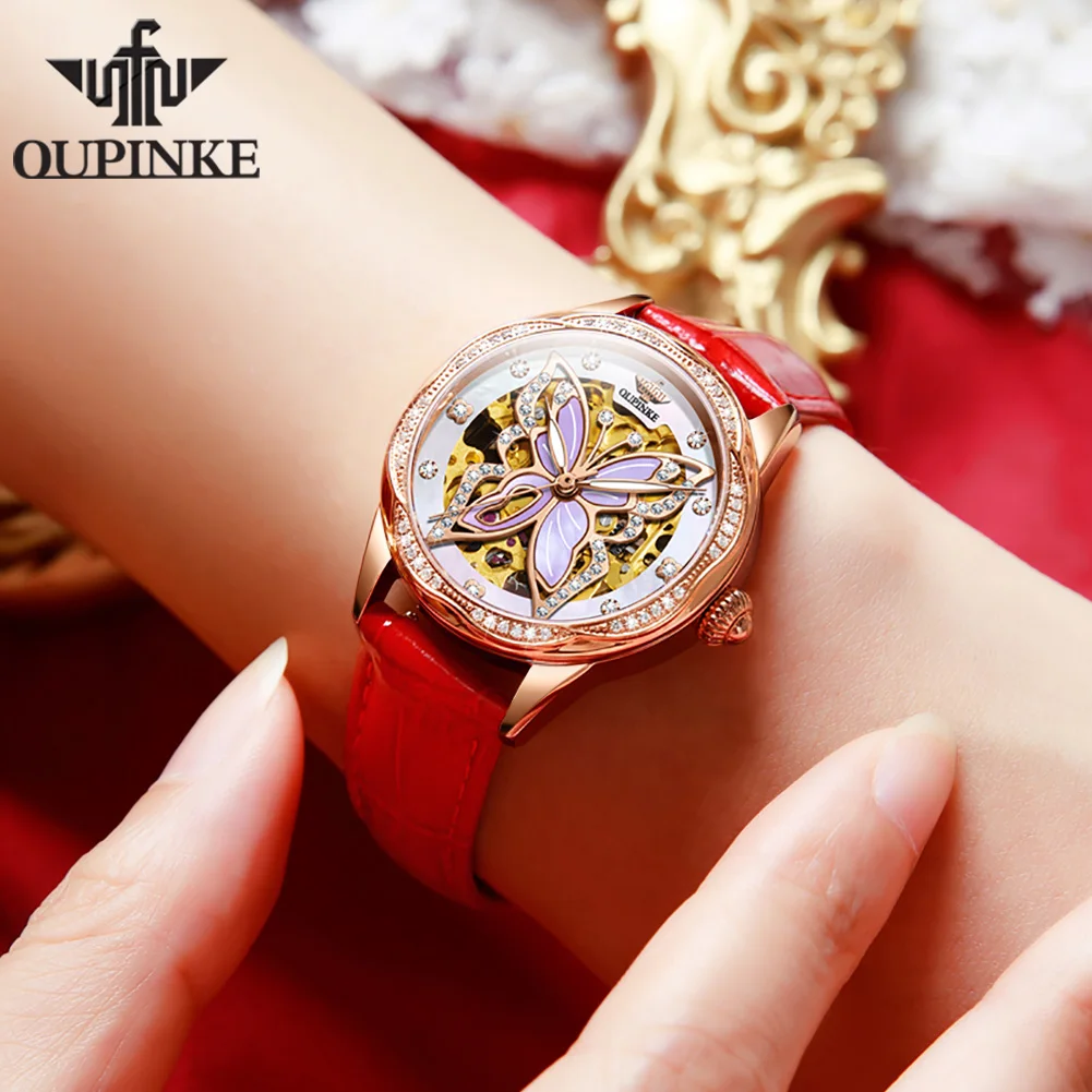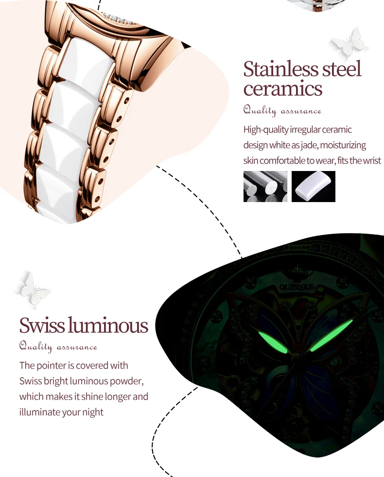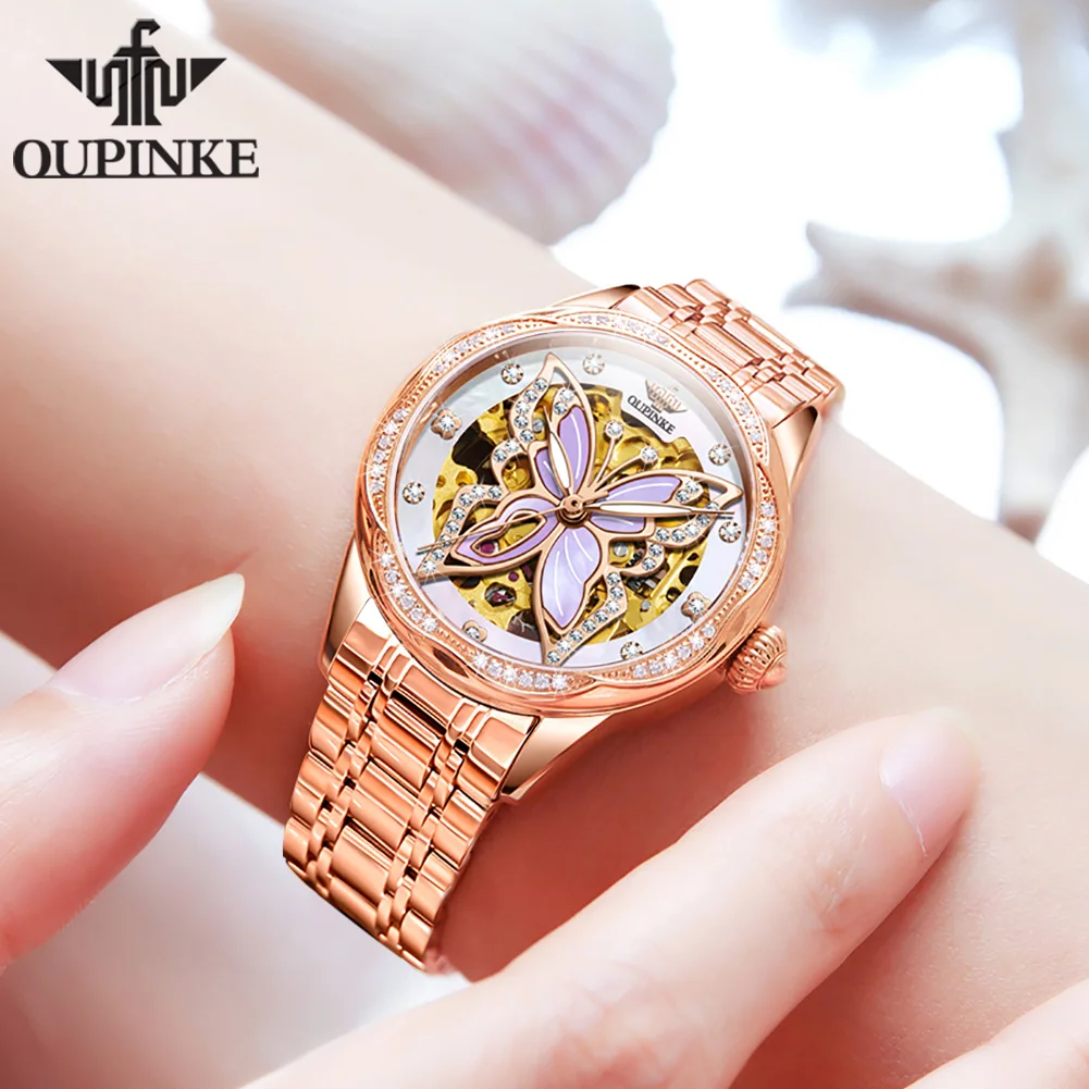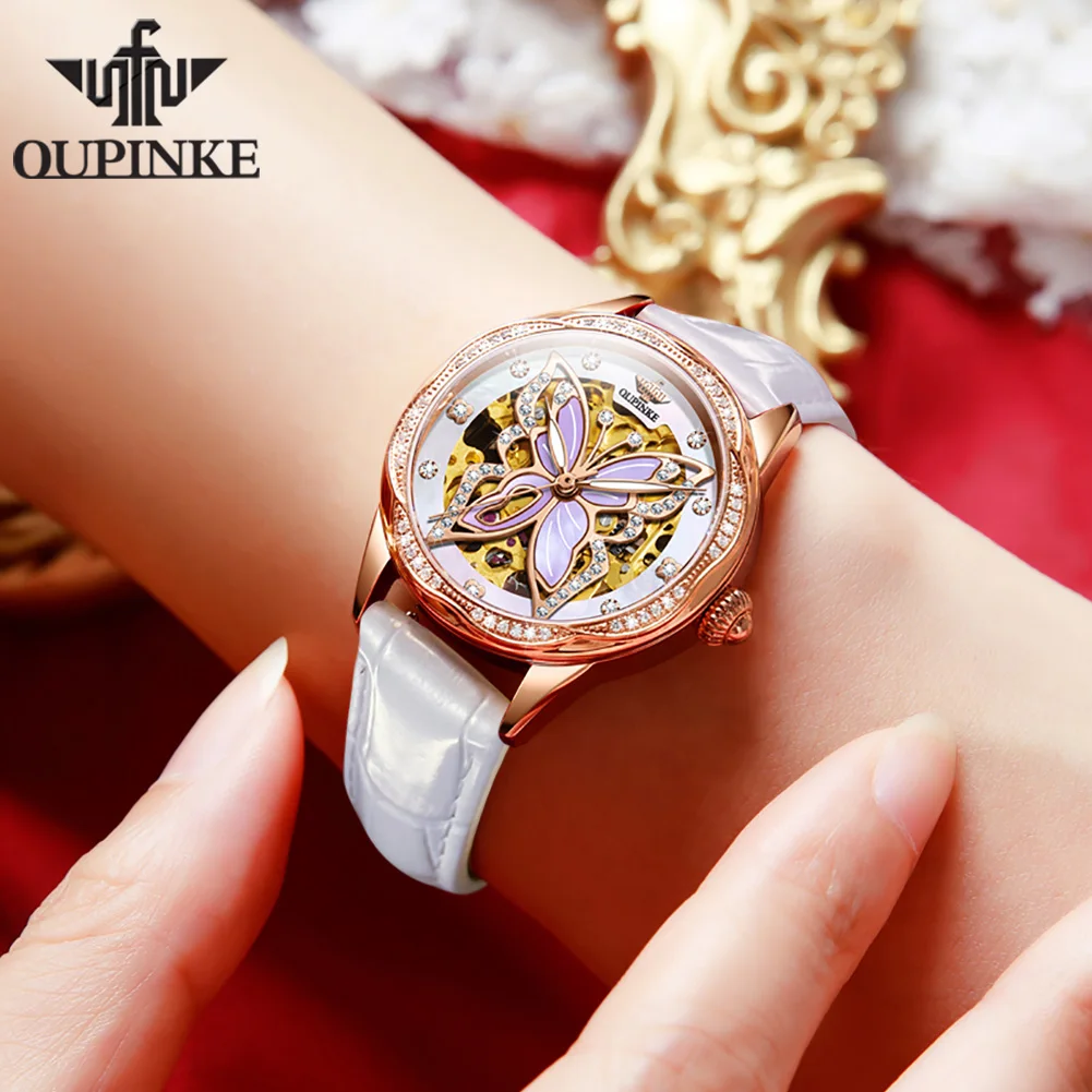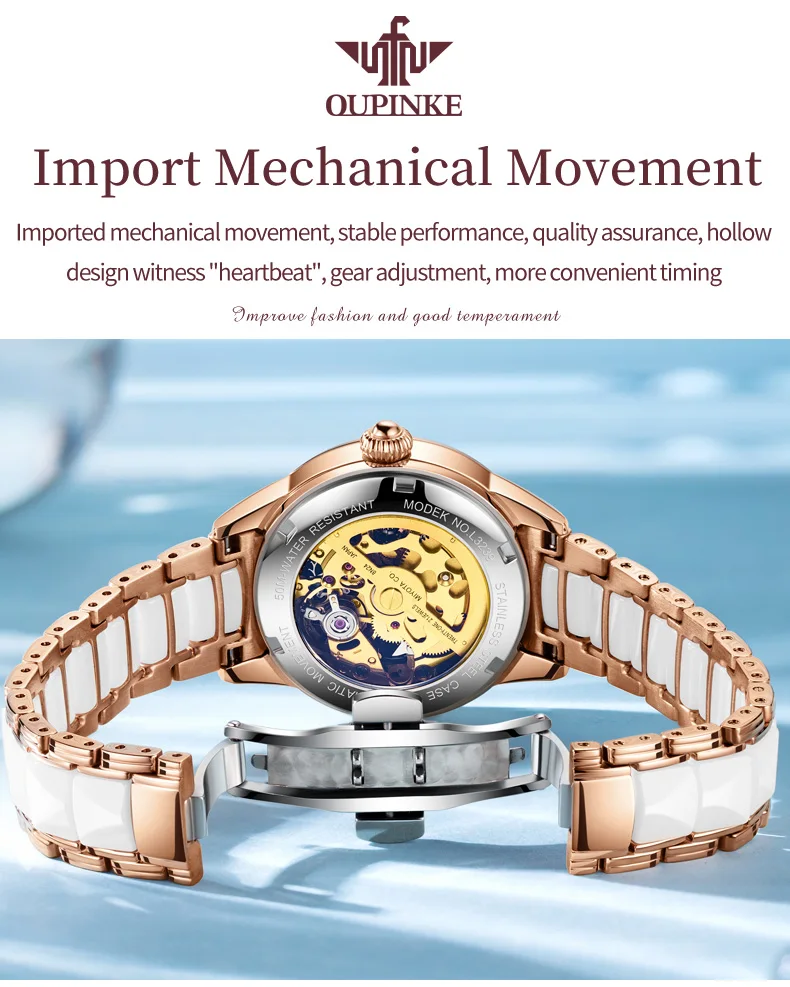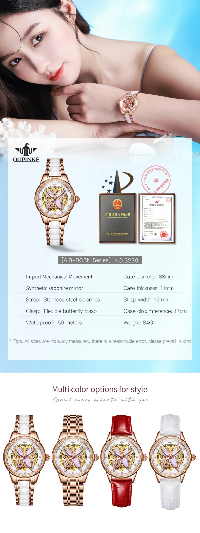 OUPINKE 3239 Automatic Watches for Women Diamond Butterfly Design Imported Movement Ceramics Watchband Elegant Women’s Watches