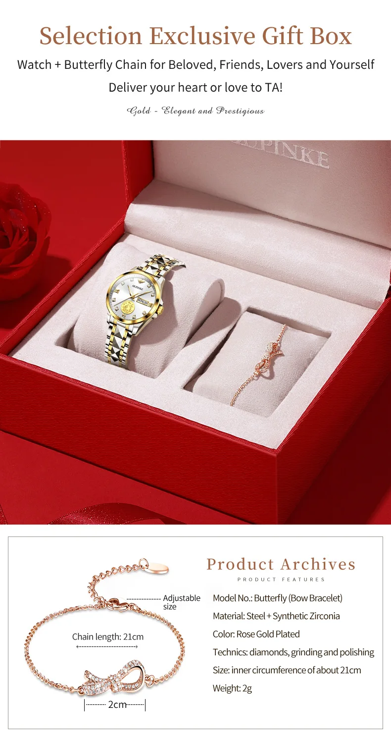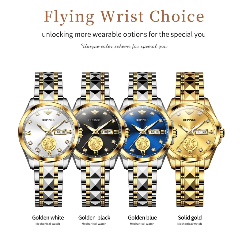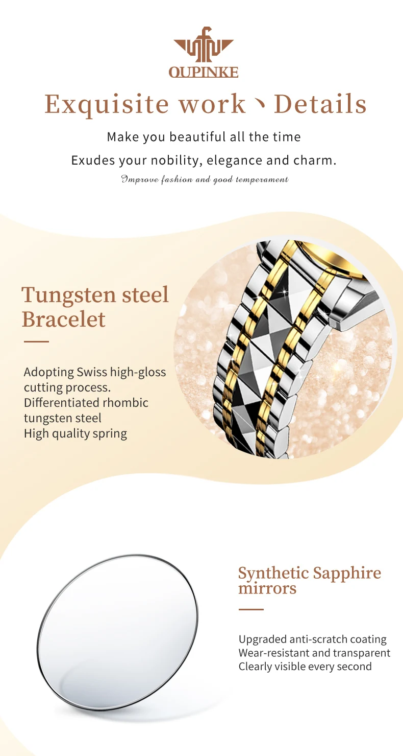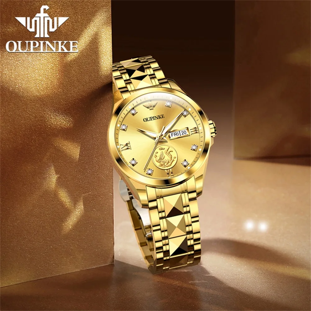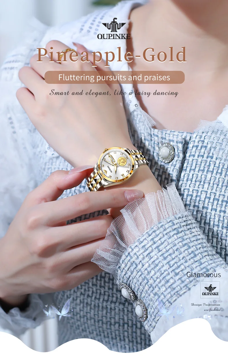 OUPINKE 3259 Dual Calendar Mechanical Watch For Women Real Gold Luxury Ladies Hand Clock Stainless Steel Original Woman Watches