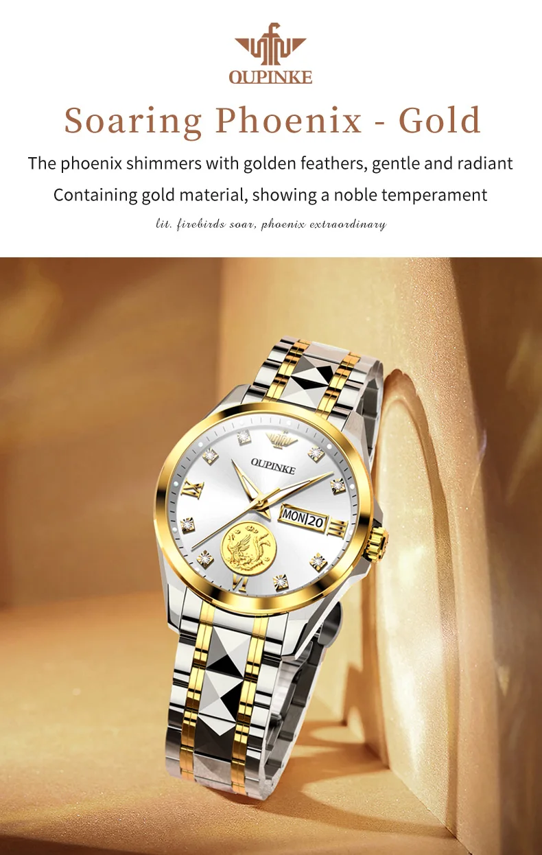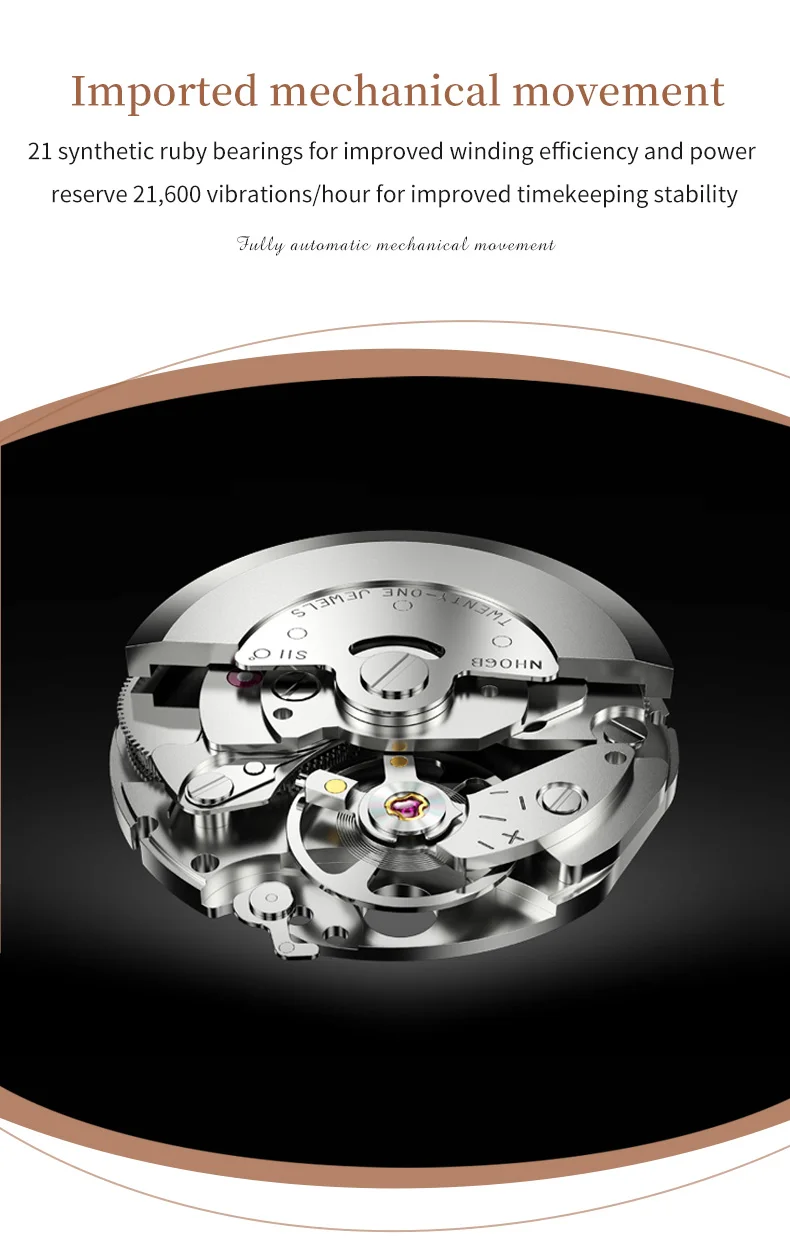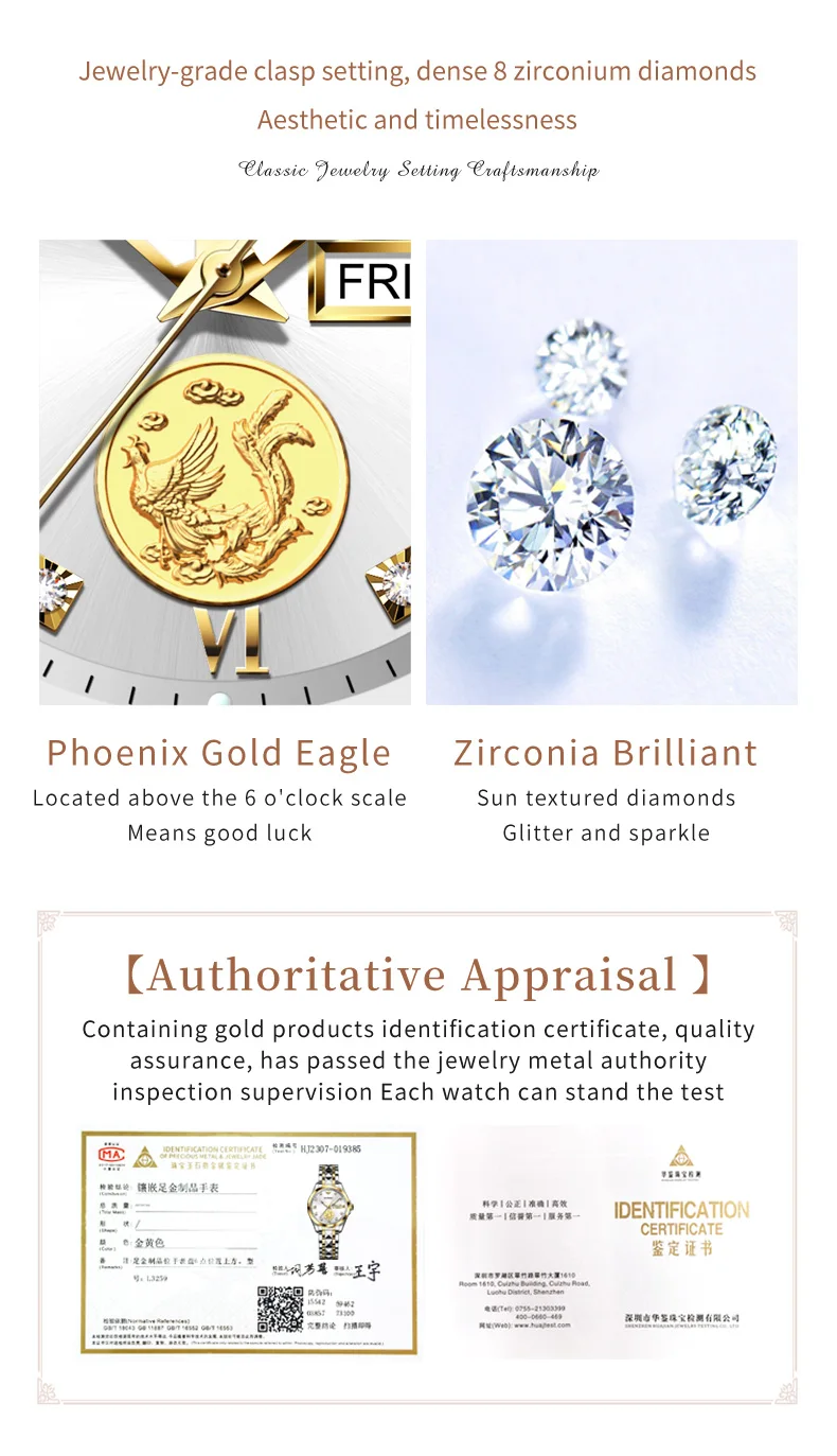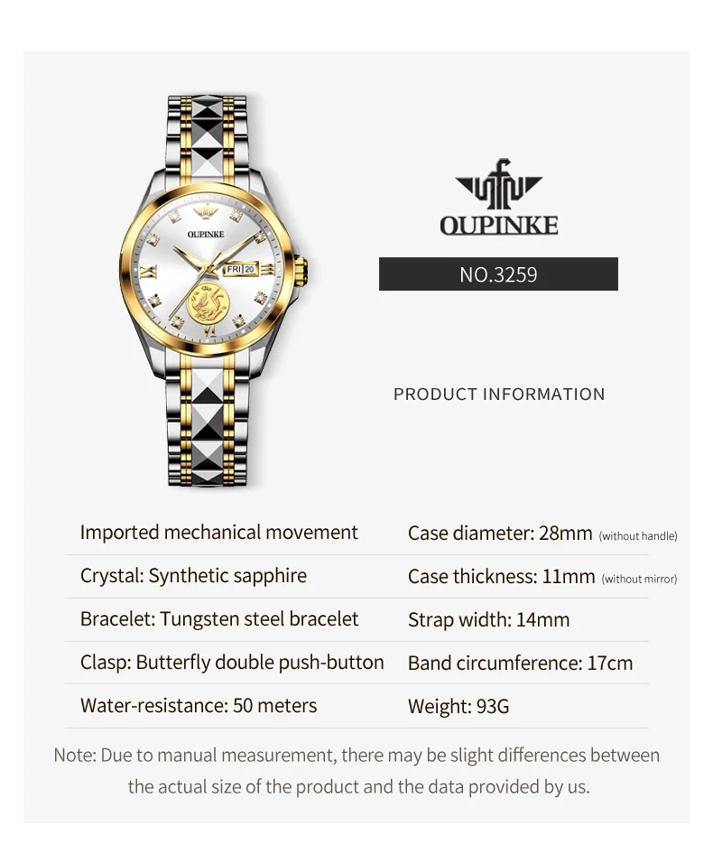 OUPINKE 3259 Dual Calendar Mechanical Watch For Women Real Gold Luxury Ladies Hand Clock Stainless Steel Original Woman Watches