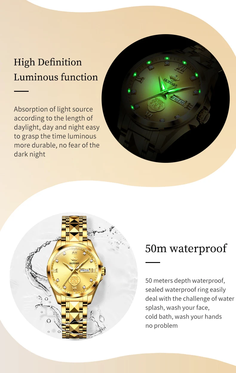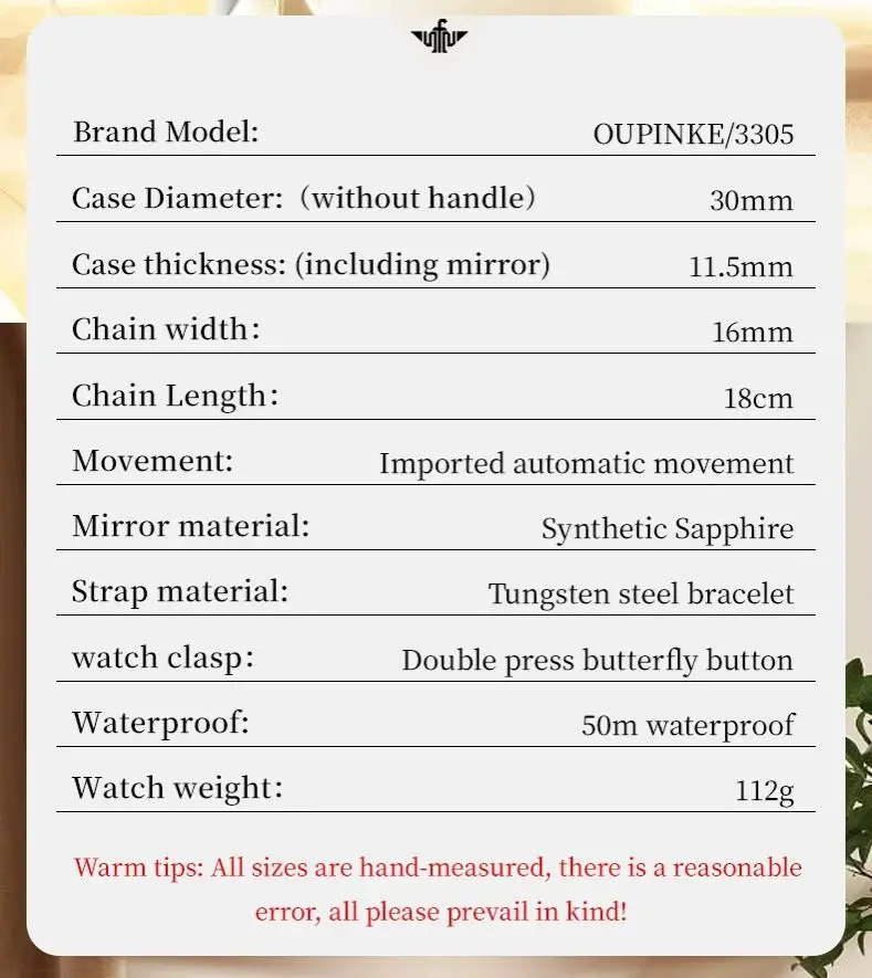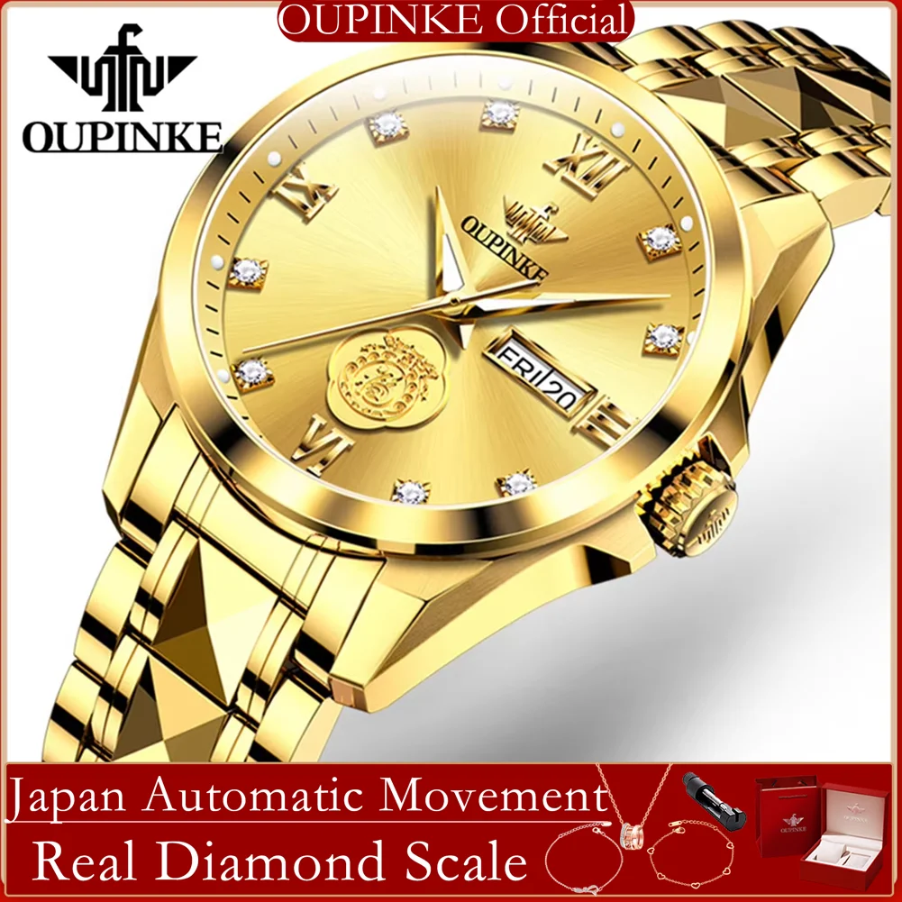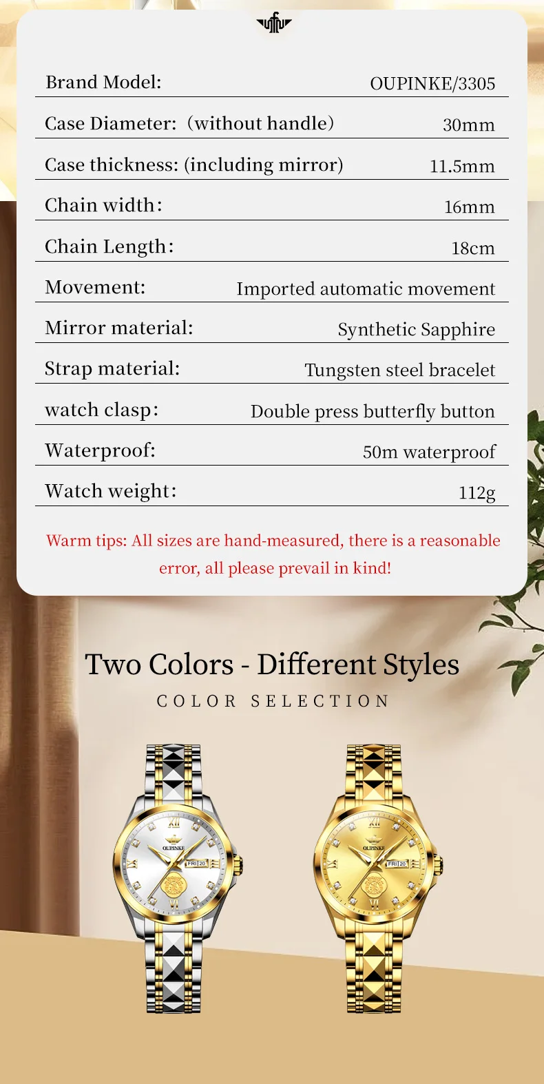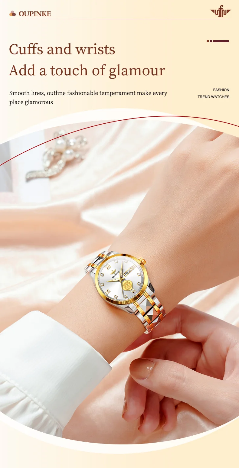 OUPINKE Real Diamond Real Gold Ladies Lucky Watches Luxury Brand Tungsten Steel Automatic Mechanical Wrist Watch for Women 3305