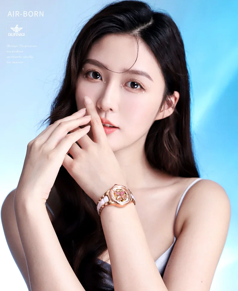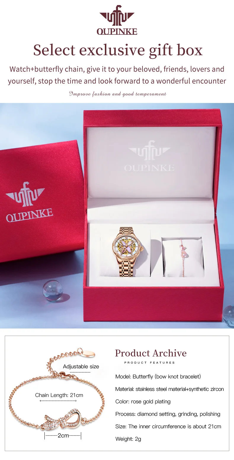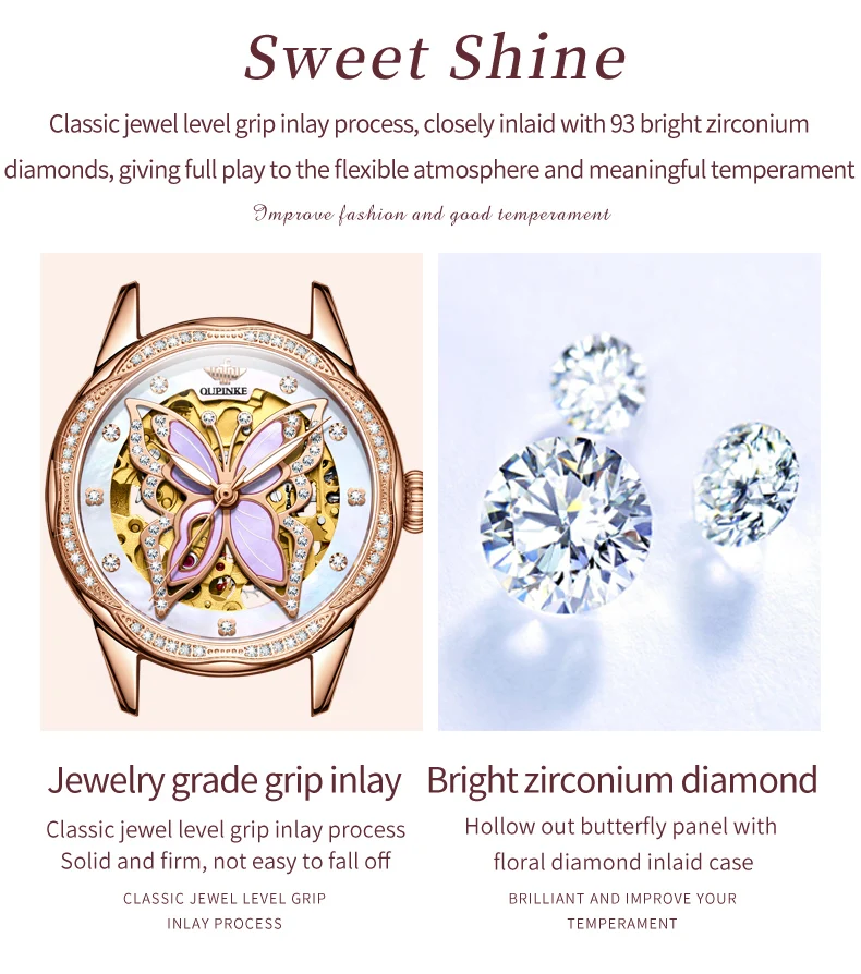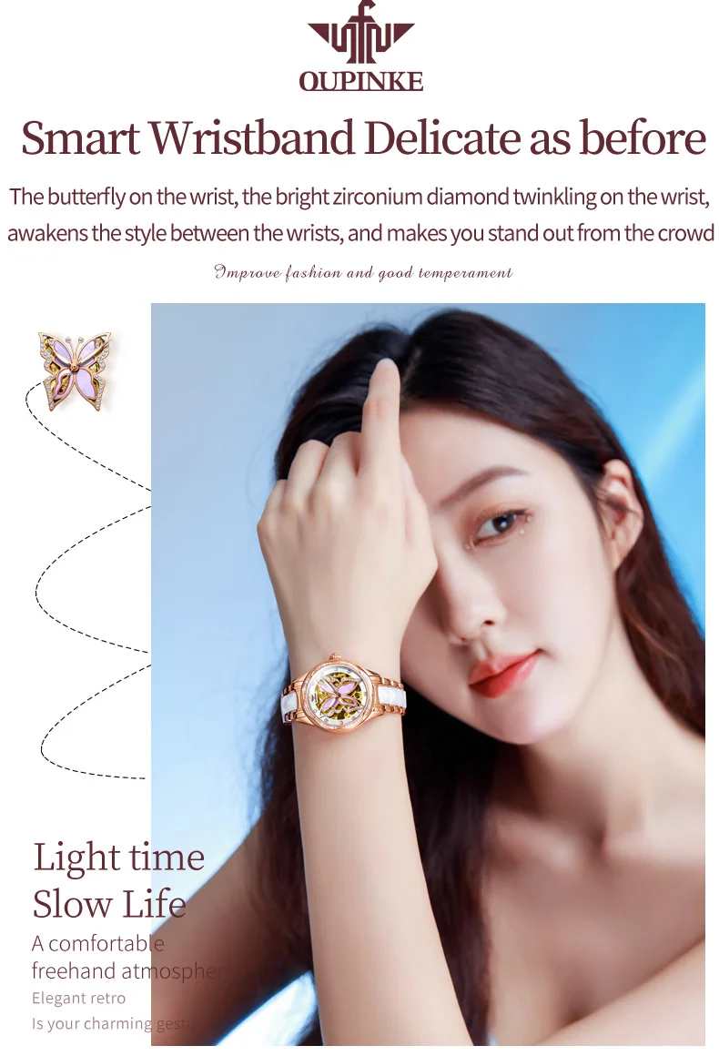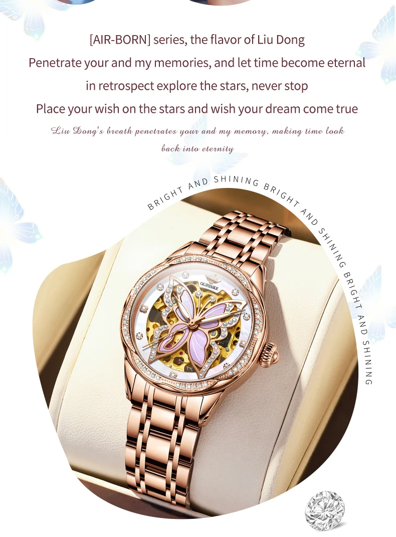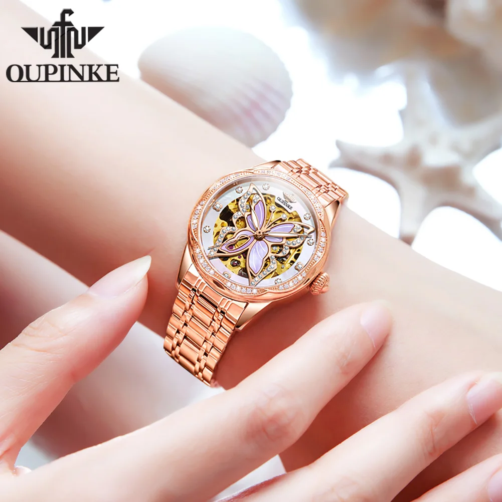 Featuring a unique butterfly dial, this OUPINKE watch exudes luxury and elegance, perfect for the fashion-conscious lady.