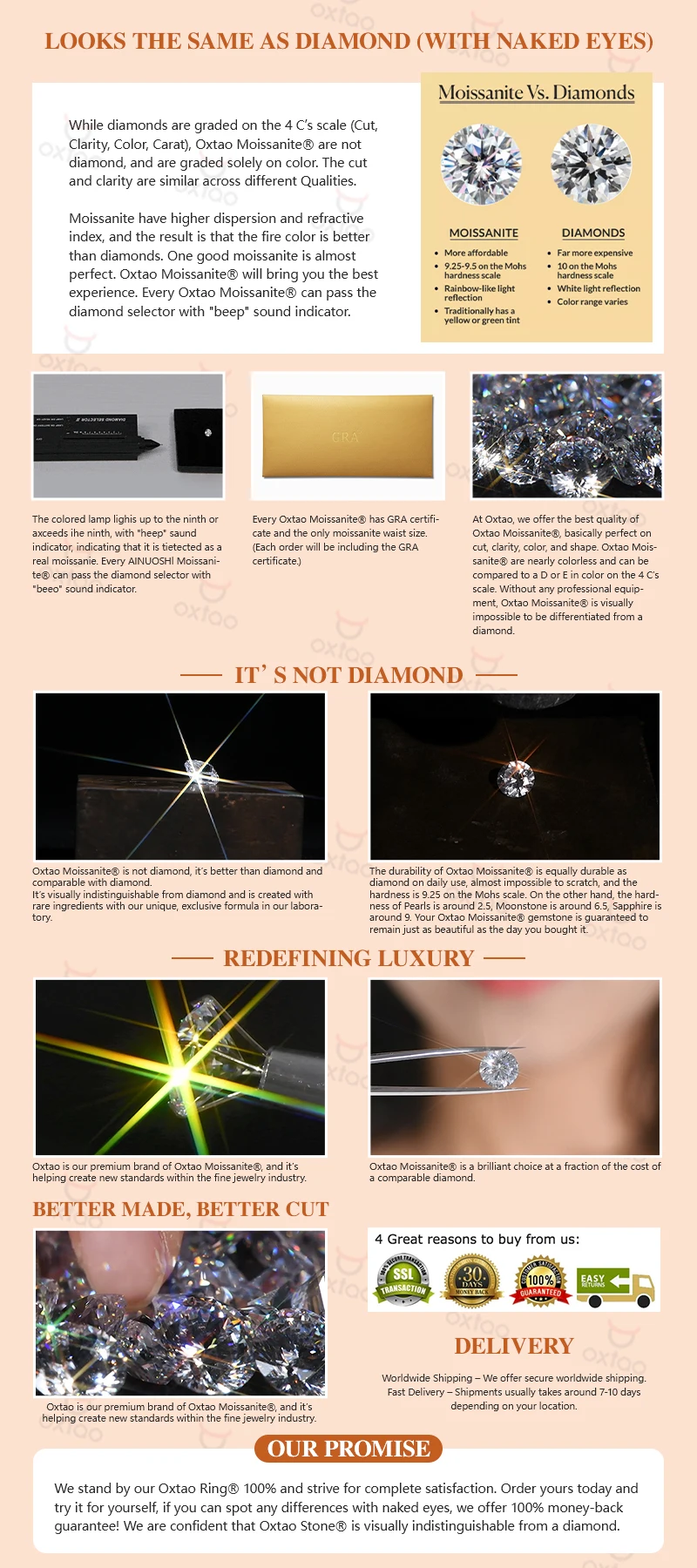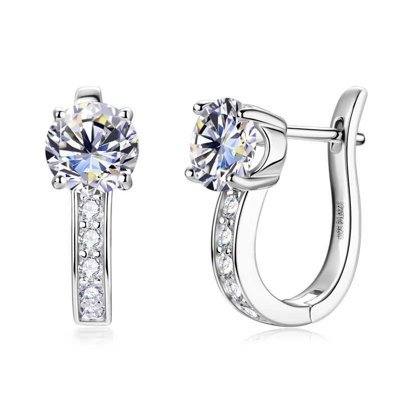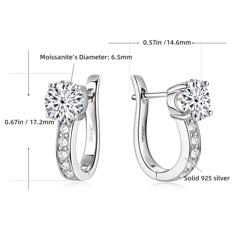 OXTAO 1CT Moissanite U Shape Hoop Earrings 925 Sterling Silver Stud Ear D Color VVS1 For Women Anniversary Gift Fine Jewelry