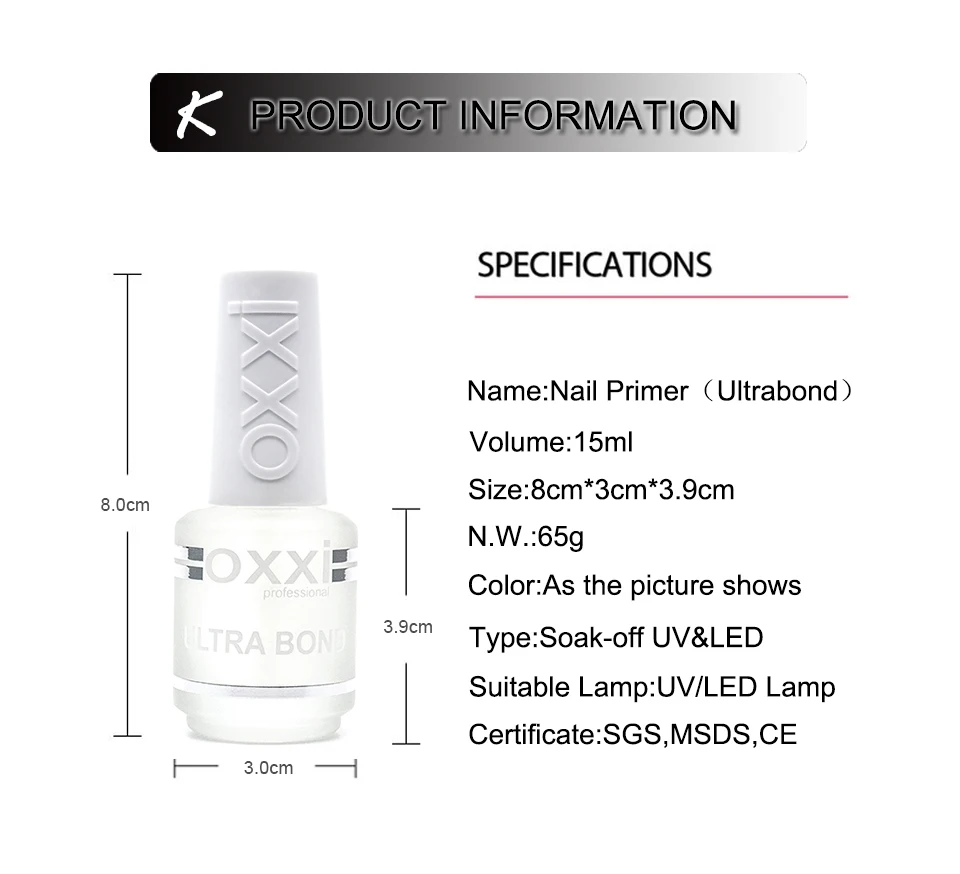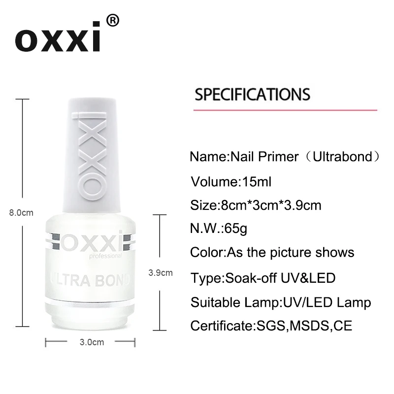 OXXI Latest 15ml Primer for Nails Semi-permanent uv Varnish Gel Nail Polish Manicure Acid free Ultrabond Rubber Base Top Gel lak
