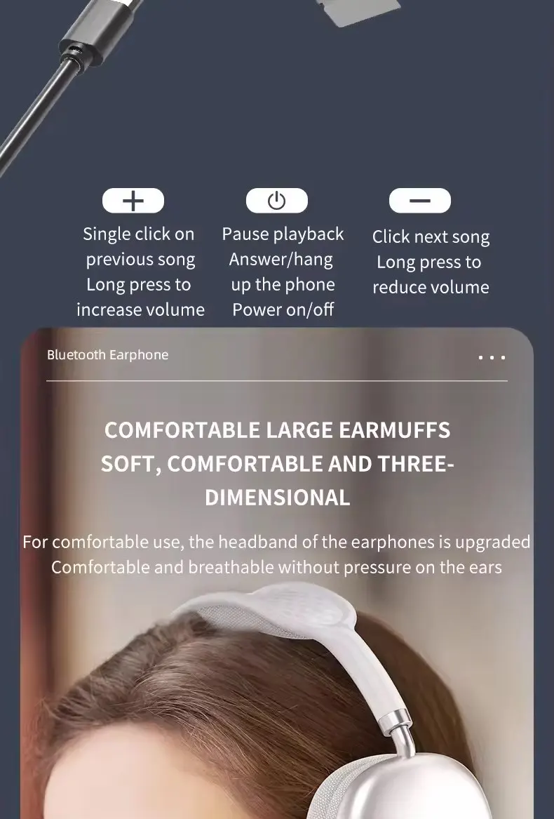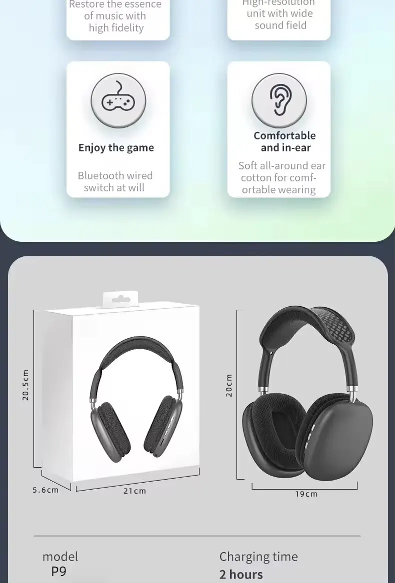P9 Air Pro Max Wireless Bluetooth Earphones Headphones Headset Sports Gaming TF Card Slot Headset Noise Cancelling Headphone