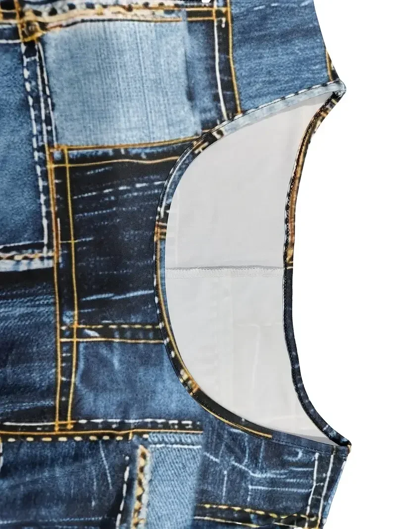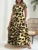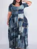 Plus Size 1XL-5XL Summer Maxi Dress Women’s Casual Denim Plaid Dress Ladies Round Neck Short Sleeve Summer Maxi Dress Flared Hem