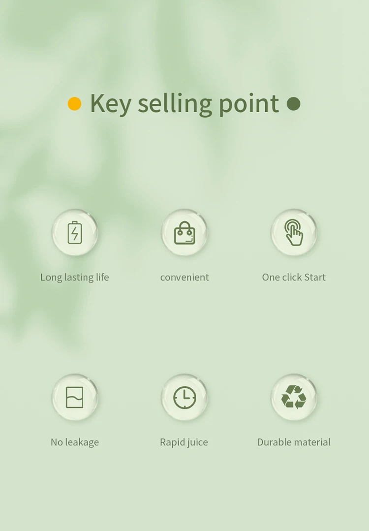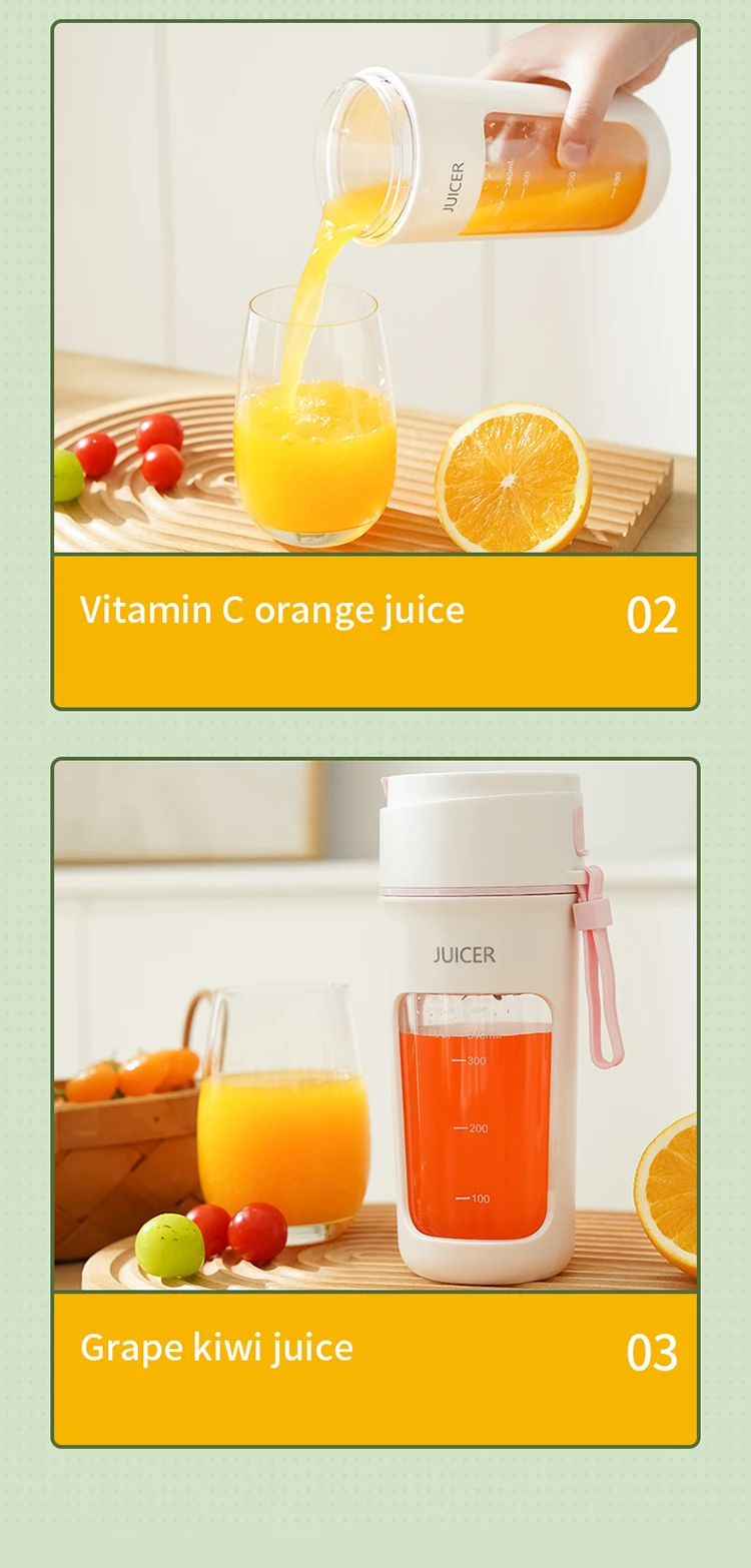 High-Powered Motor:Equipped with a powerful motor, the portable juicer creates a delicate texture effortlessly.
