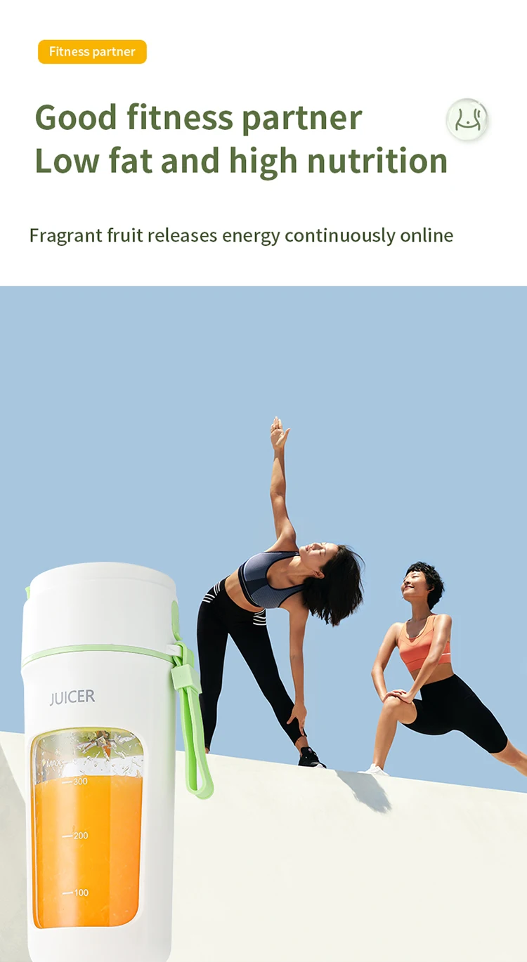 Portable Blender Juicer:Compact design with a handcup-like portability, perfect for on-the-go smoothies.